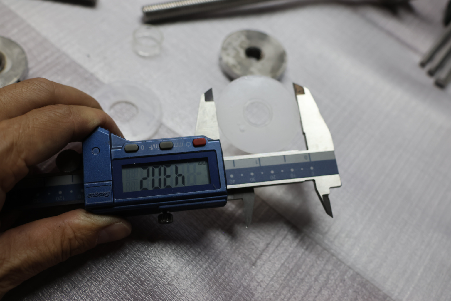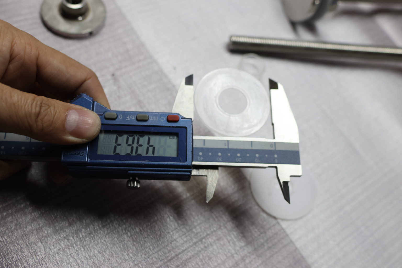 Точечный стеклодержатель для торцевого крепления несущего стекла в диапазоне от 8 (5+5) мм до 18 (8+8) мм. Диаметр наружной и внутренней шайб по 44 мм.