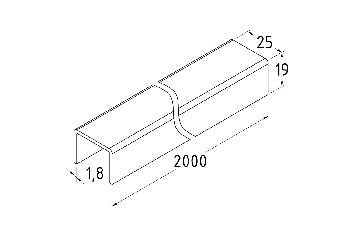 Профиль П-образный t=1,5 мм под стекло 20 мм, шлифованный, длина 2000 мм AISI 304 Ф-1148