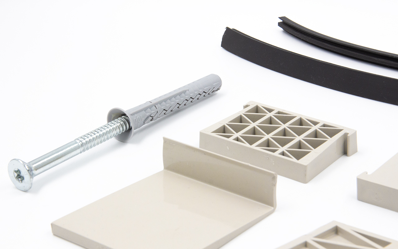 Сразу подумал что распорные клинья из расчета 3 штуки на метр как-то маловато. Но оказалось само то, не много и не мало, отлично держат несущее стекло. Приятно, что в комплекте есть уплотнительные резинки, не нужно искать и покупать.