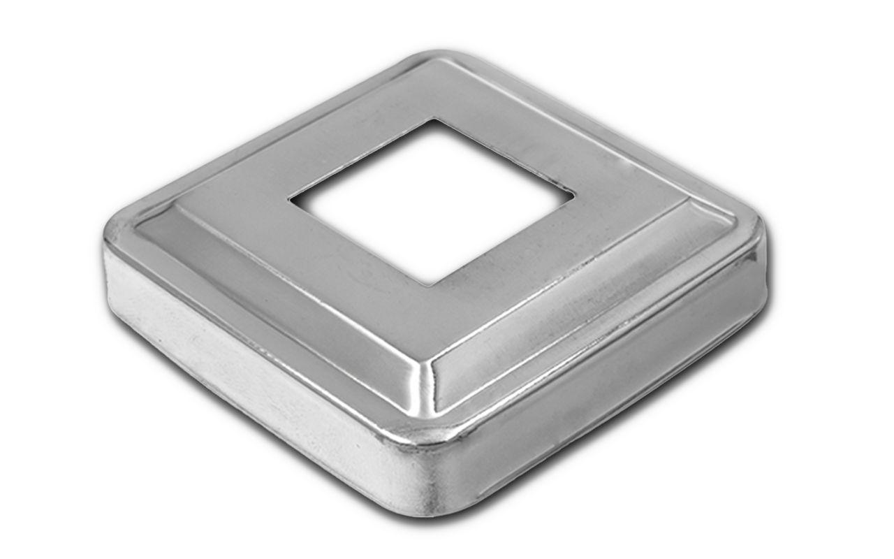 Низ стойки фигурный под трубу 25х25 мм, 66х66х0.4, высота 16 мм, полированный (AISI 304) k374