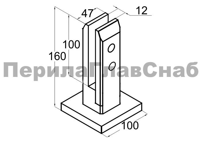 Стеклодержатель напольный 50х50х160 мм, литой, плоский, без сверления, нержавеющая сталь AISI 304, полированная k275-3 купить в Нижнем Новгороде