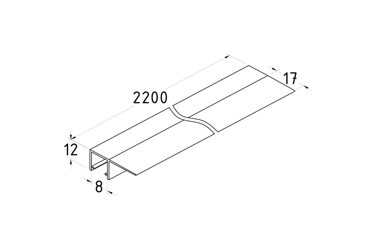Длина 2200 мм. Монтируется по всему периметру стеклянного листа. Позволяет соединять стеклянные панели между собой
