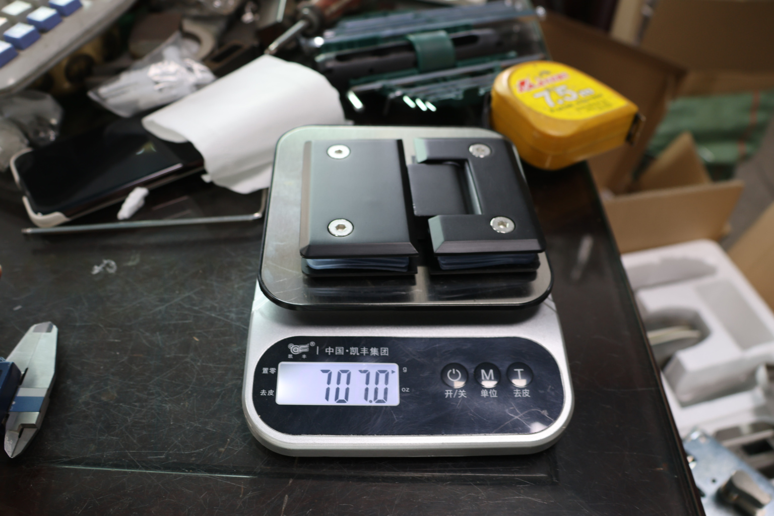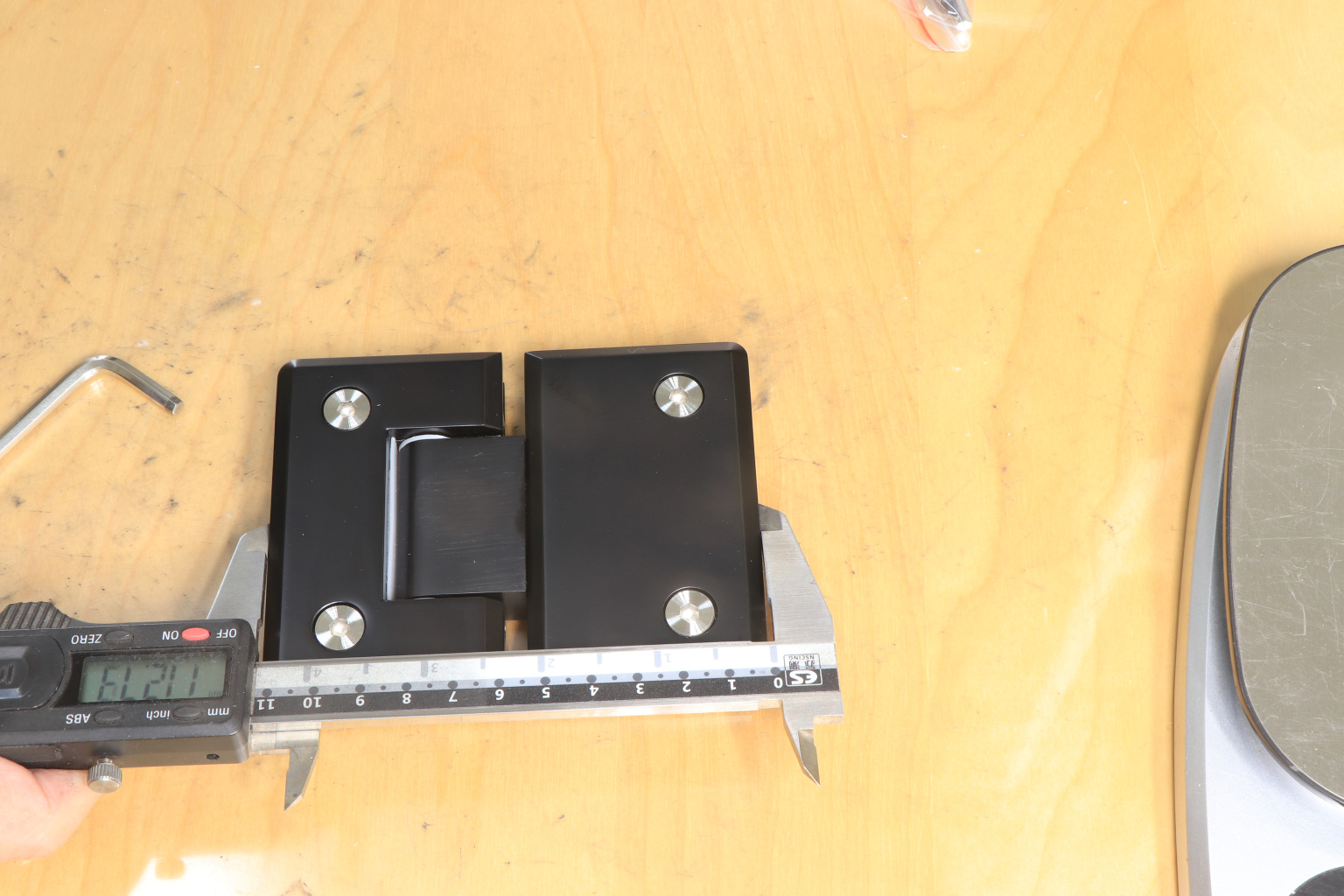 Петля стекло-стекло для соединения стеклянной двери с неподвижным стеклом под углом 180°. Поворот петли в обе стороны с фиксацией на 90º. Масса двери может составлять до 35 кг на две петли.