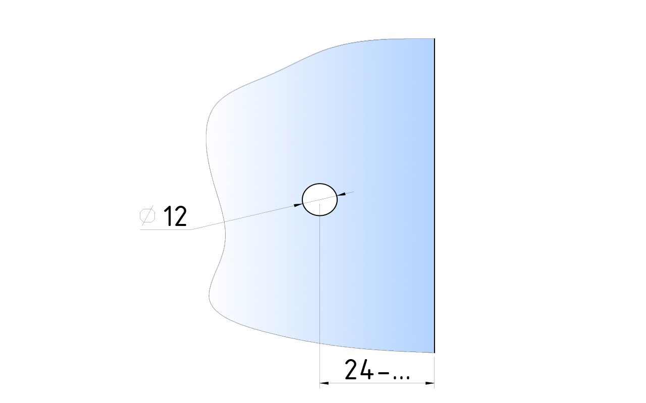 подготавливается отверстие в стекле с вырезом и с двух сторон закручивается ручка