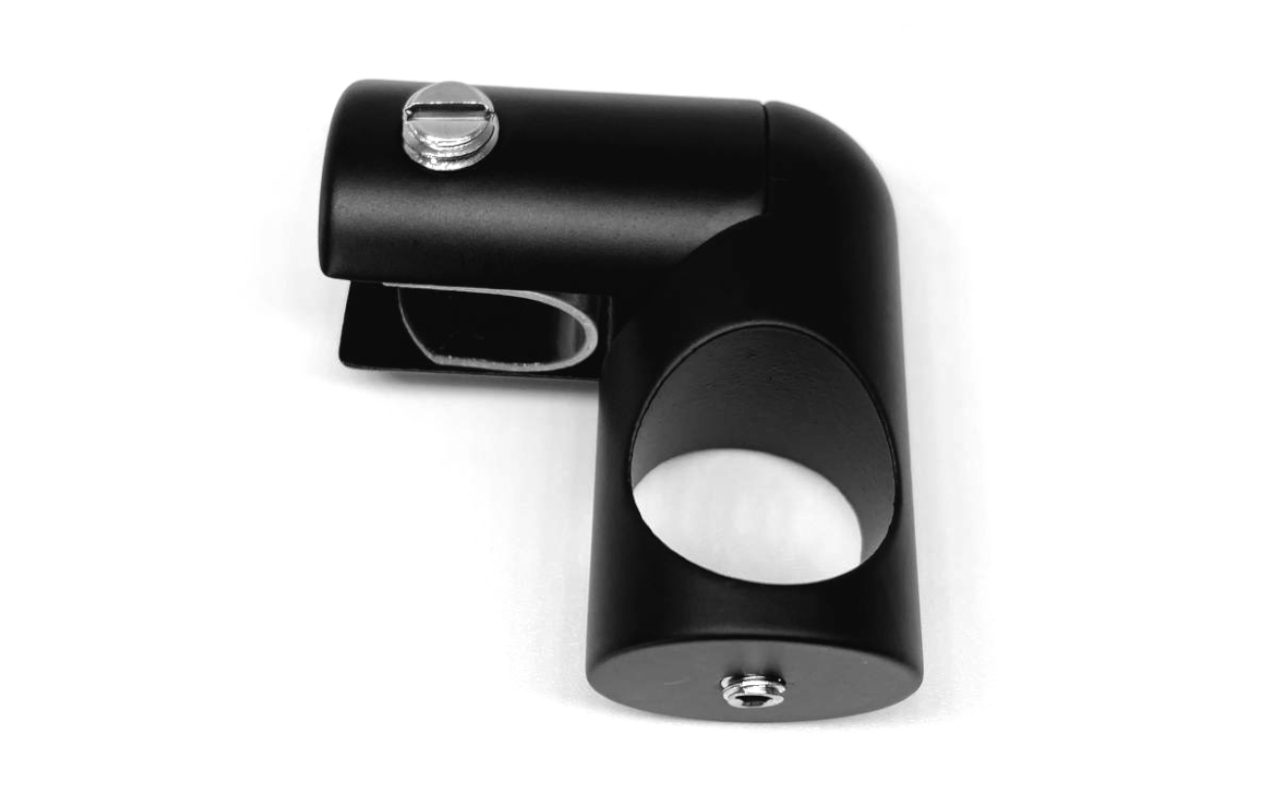 Коннектор предназначен для крепления круглой трубы 19 мм к стеклу в горизонтальной ориентации параллельно стеклу, при монтаже штанг верхней обвязки душевых кабин.