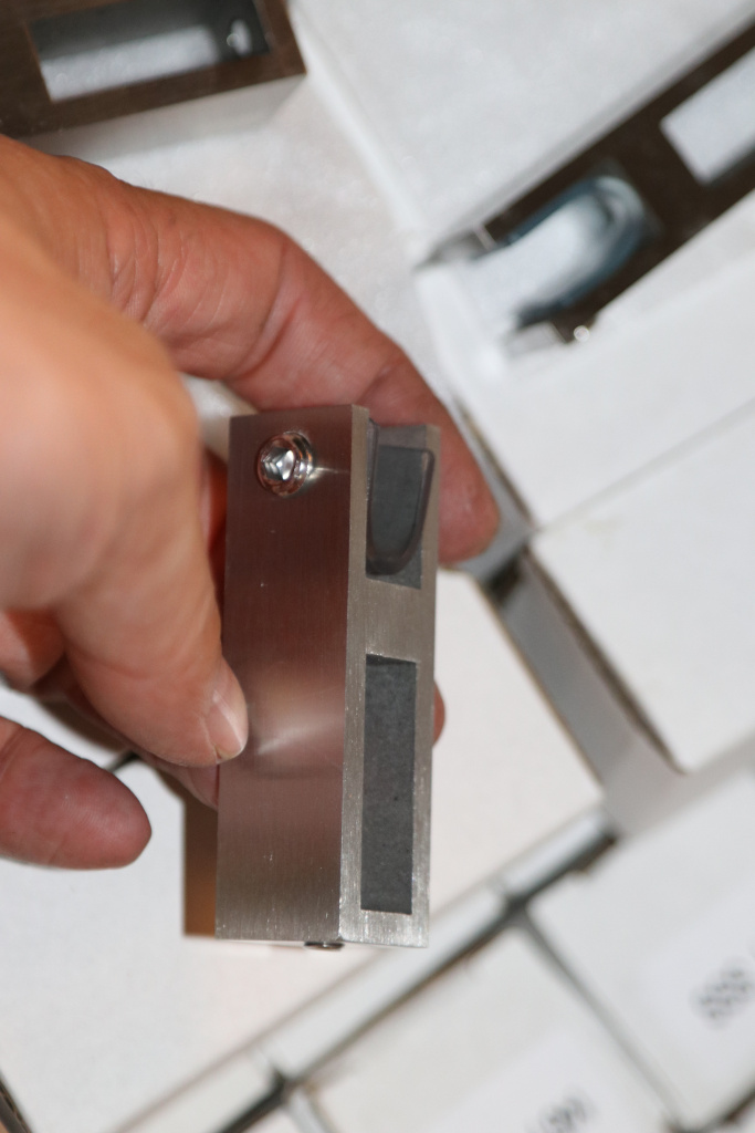 Трек вставляется в отверстие держателя. Далее держатель фиксируется на нужном месте трека с помощью винта с шестигранником, после чего в паз между лепестками ставится стекло и также зажимается винтом, прокладки не допускают прямого контакта стекла с винтами , что делает соединение более надежным