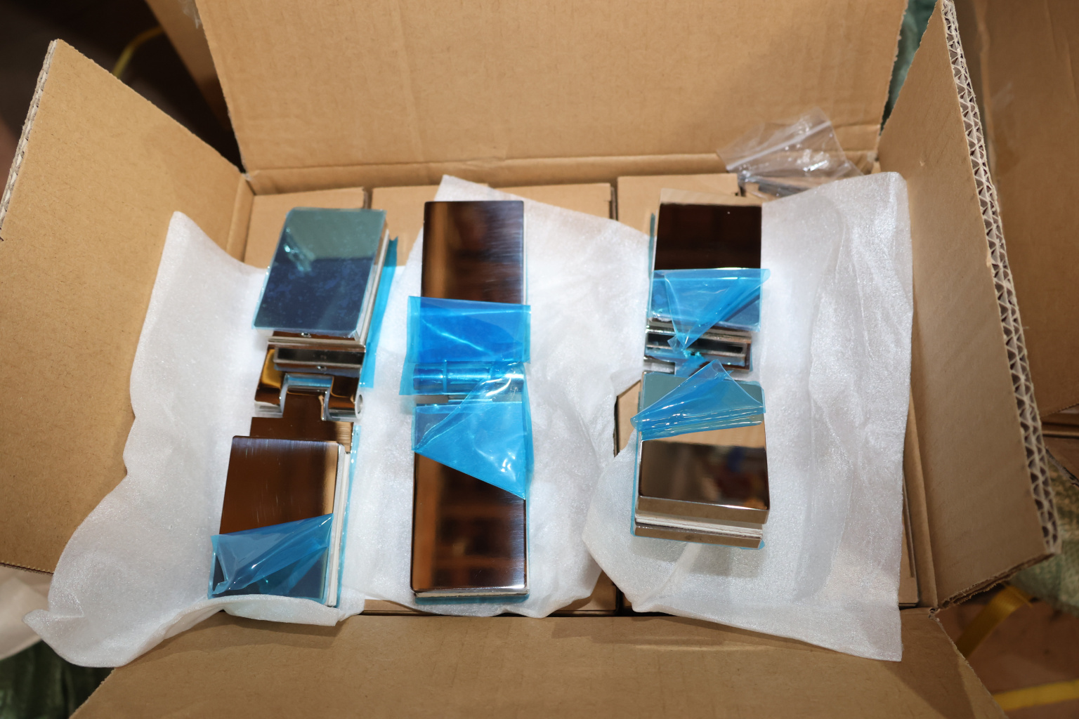 Стекло с готовым вырезом фиксируется, при закручивании используется уплотнитель. Если между стекло-стекло остаётся щель, то используем уплотнитель.