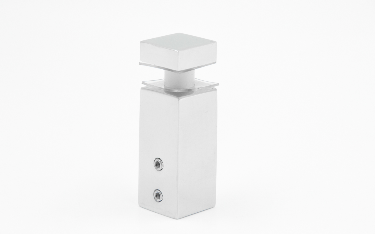 Предназначен для соединения штанги в душевых кабинах, позволяя соединить ее без сварки. Служит для крепления прямоугольного трека к стеклу. Крепится к стеклу через отверстие. Габаритные размеры прямоугольной станки составляют 15х15 мм.