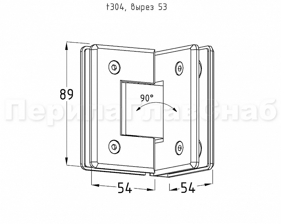 Петля для душевой кабины стена-стекло 90° 90х55 мм полированная t305-2 PSS купить в Нижнем Новгороде