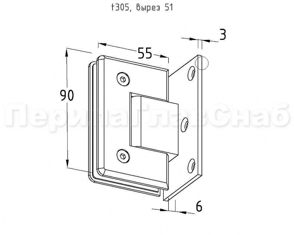 Петля для душевой кабины стена-стекло 90° 90х55 мм латунь-хром, полированная t301 PC купить в Нижнем Новгороде
