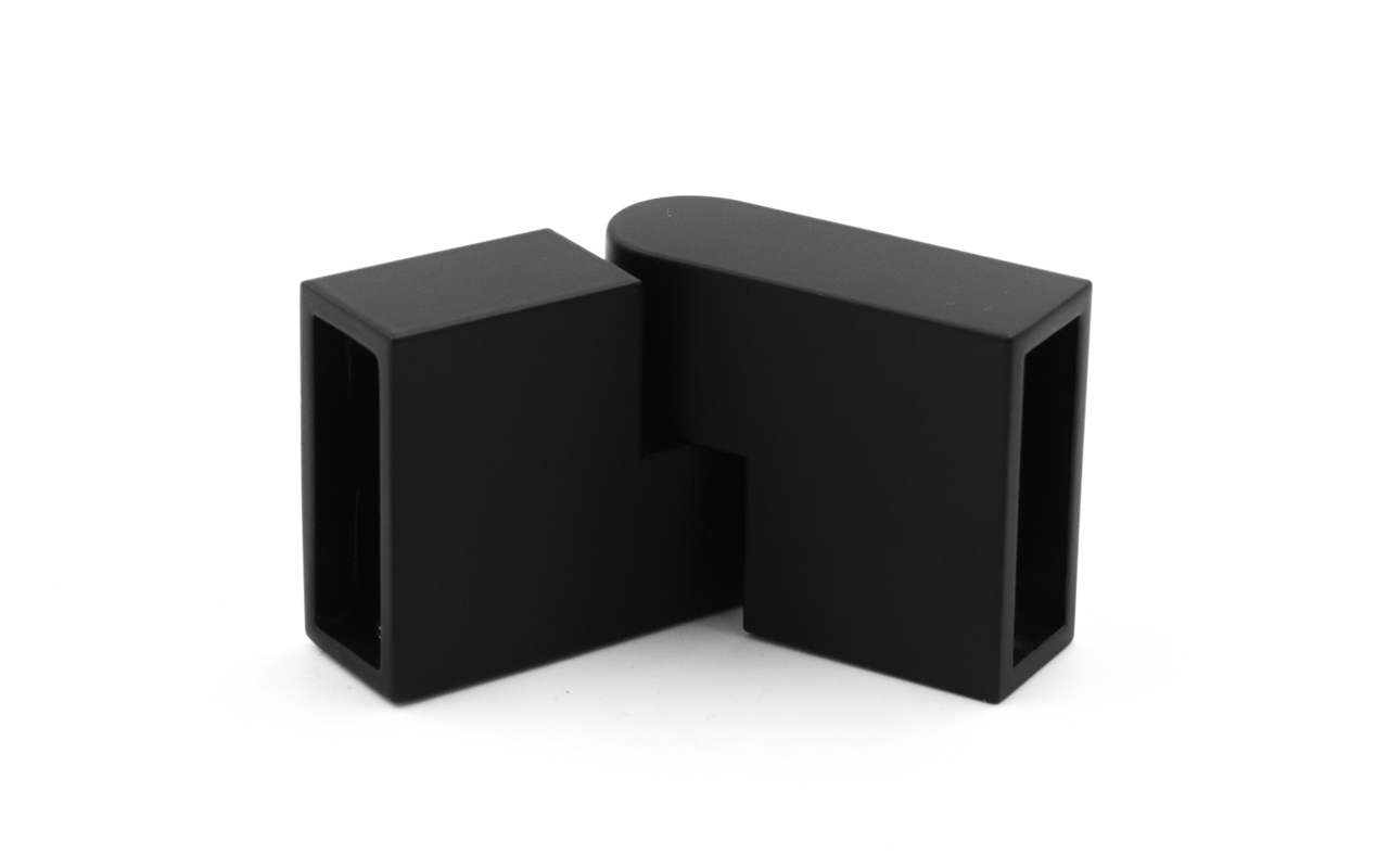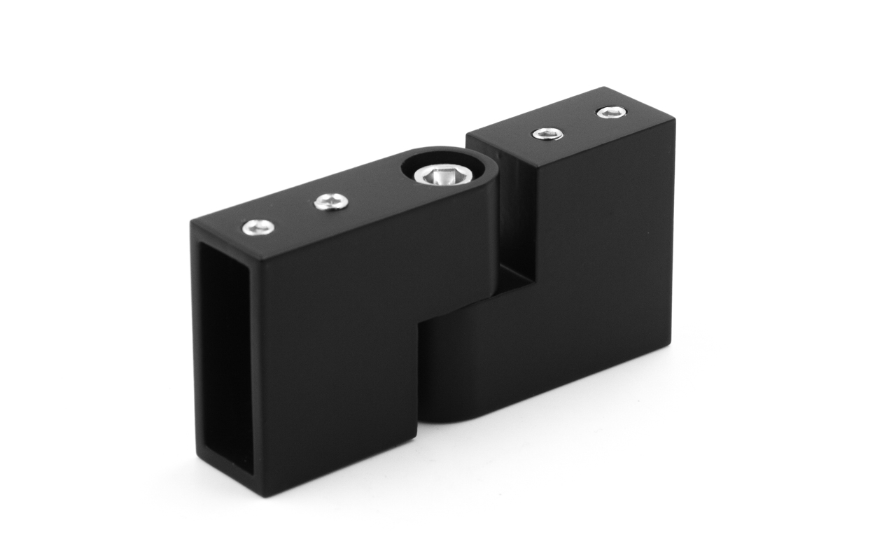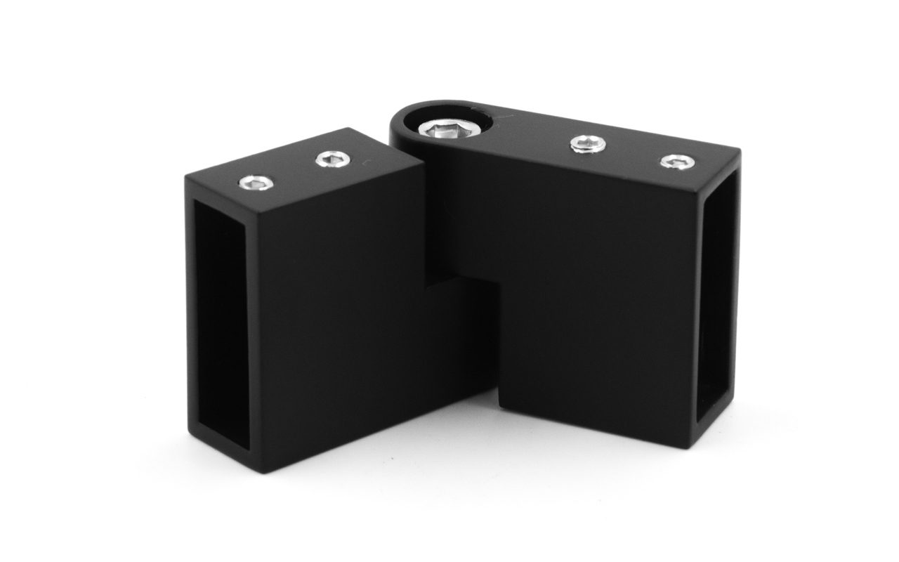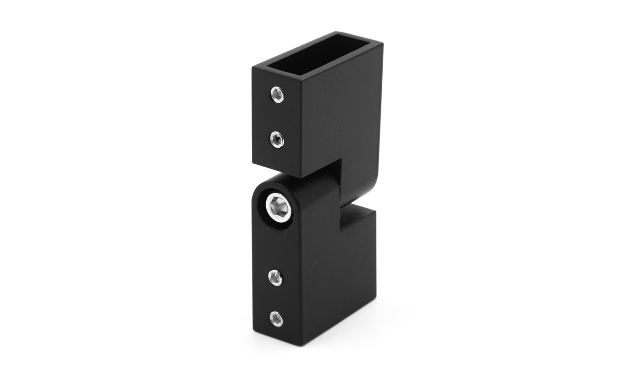 Коннектор предназначен для соединения между собой профильных труб 30х10 в вертикальной ориентации, под произвольным углом при монтаже штанг верхней обвязки душевых кабин