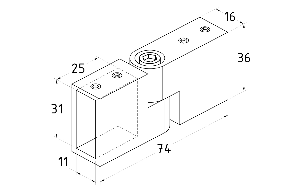 Трек монтируется внутрь соединителя с обеих сторон. Фиксация осуществляется с помощью винтов с шестигранниками