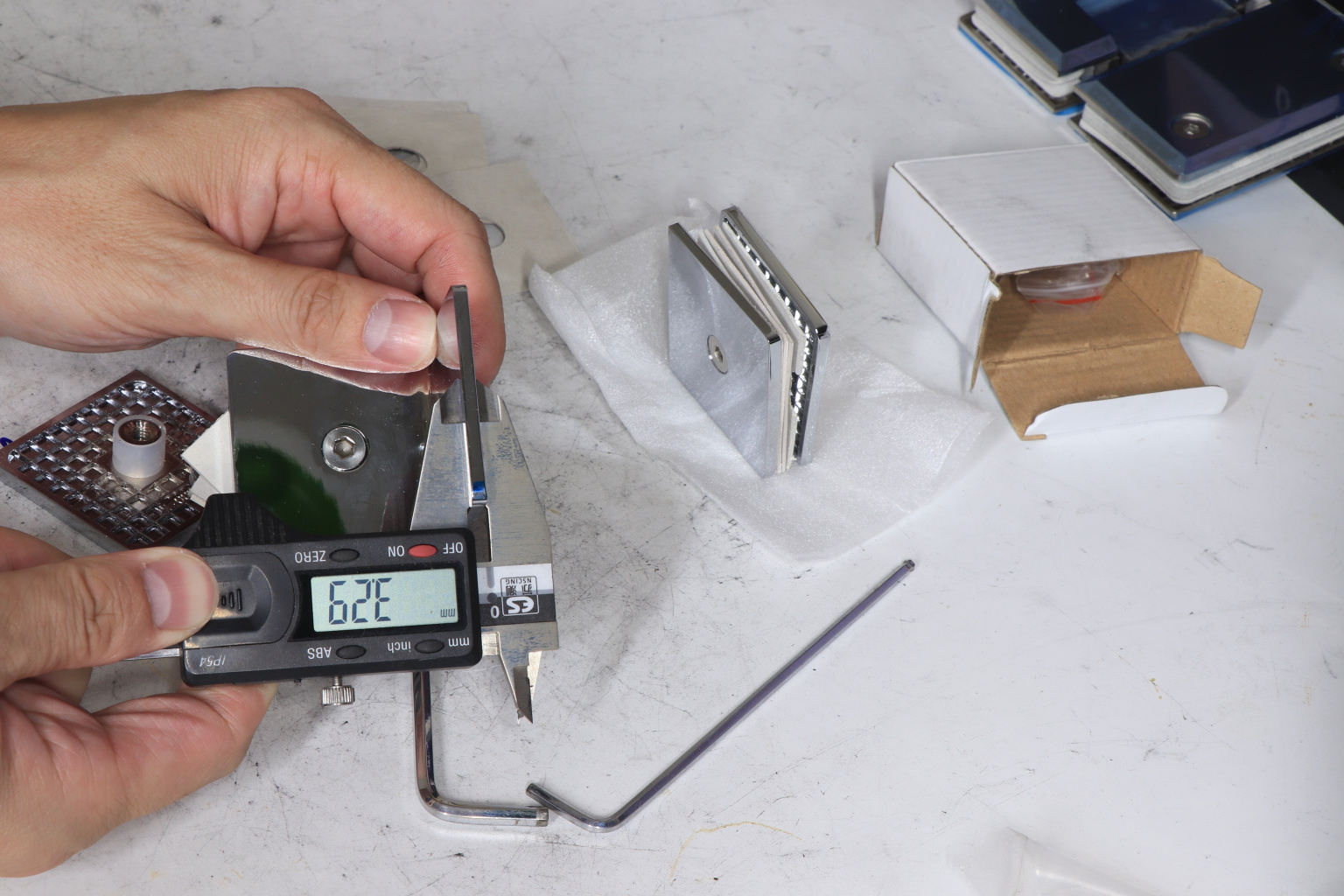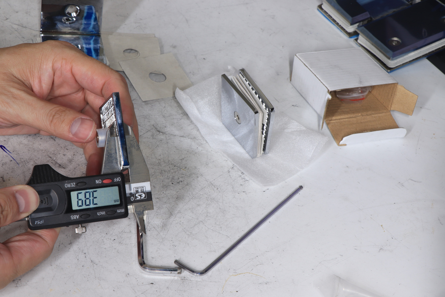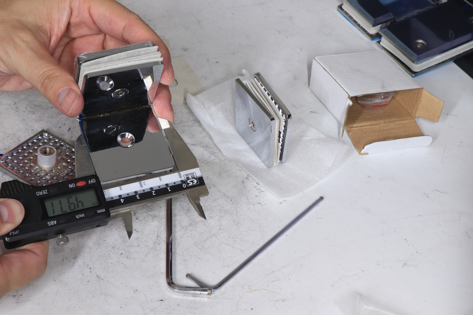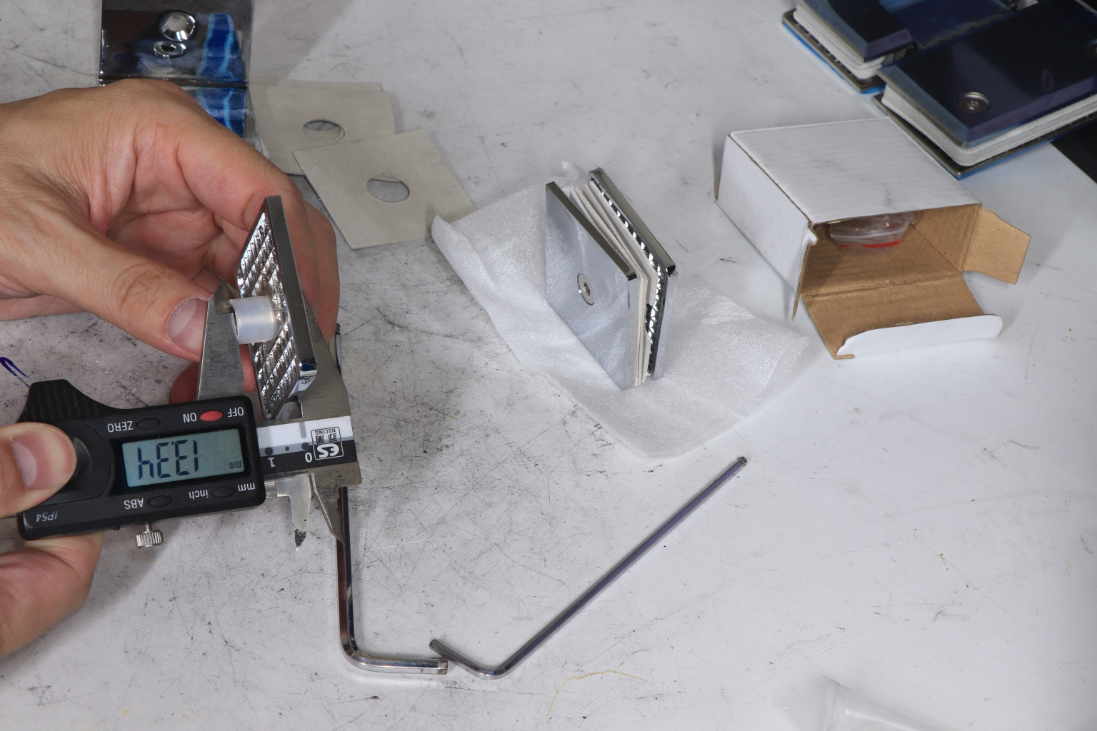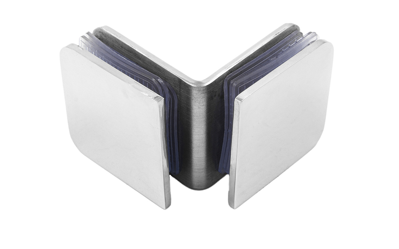 Коннектор для душевой кабины стекло-стекло 90°, 45х45 мм. Материал - латунь-хром, поверхность - полированная