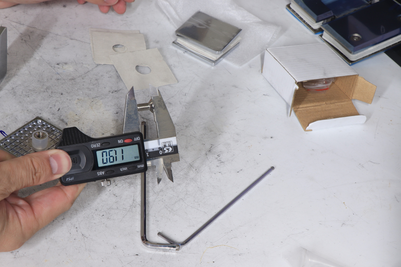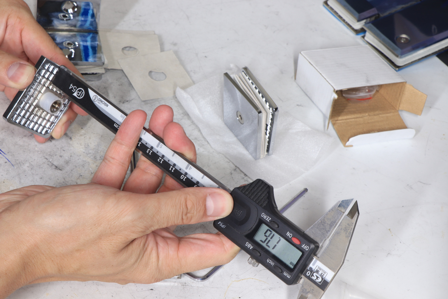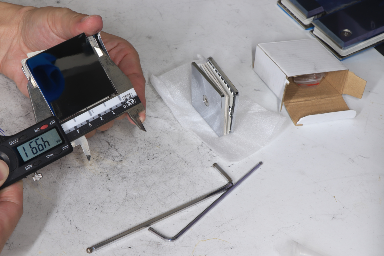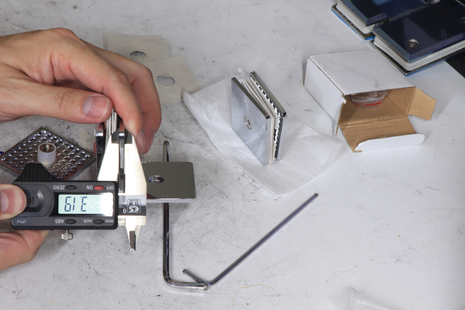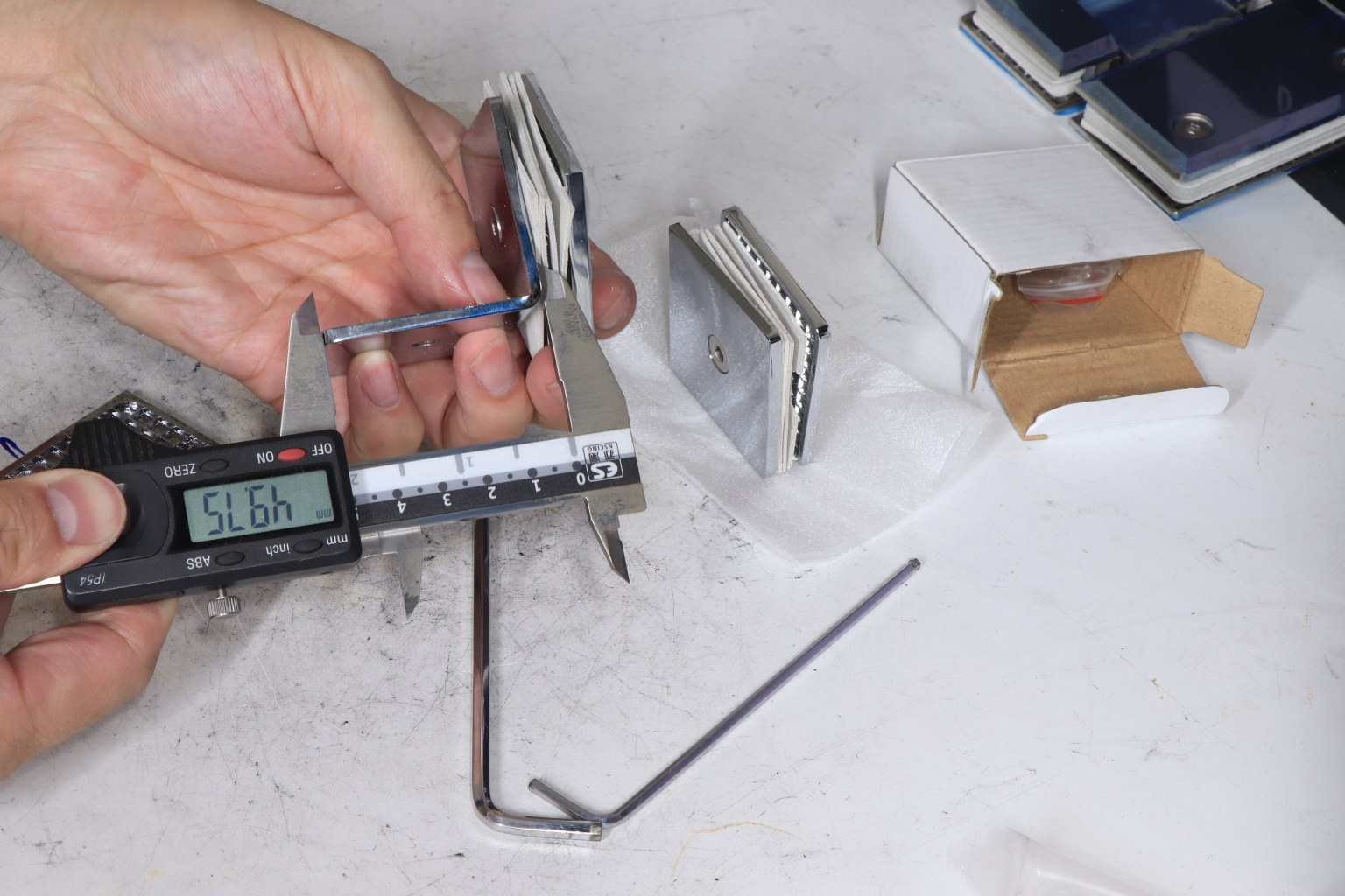 Коннектор для душевой кабины стекло-стекло 90°, 45х45 мм. Материал - латунь-хром, поверхность - полированная