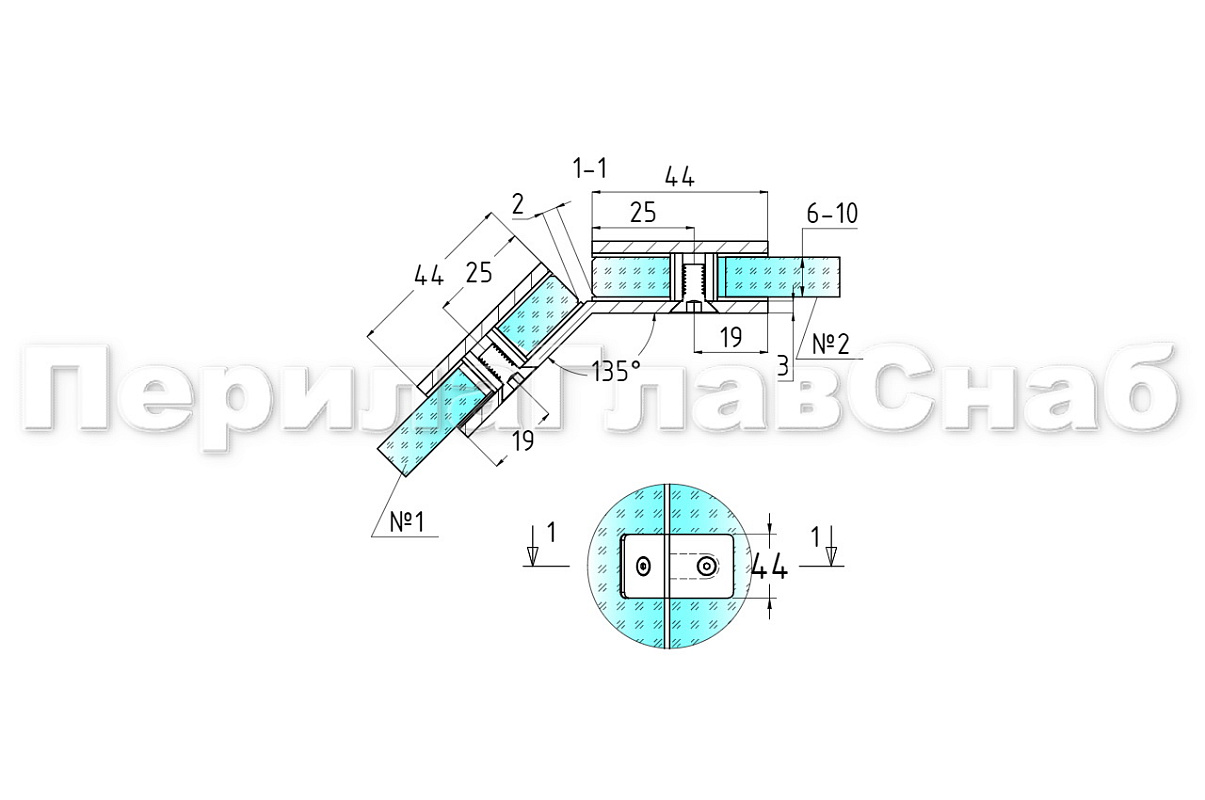 Коннектор для душевой кабины стекло-стекло 135° 45х45 мм шлифованный t726-2 SSS