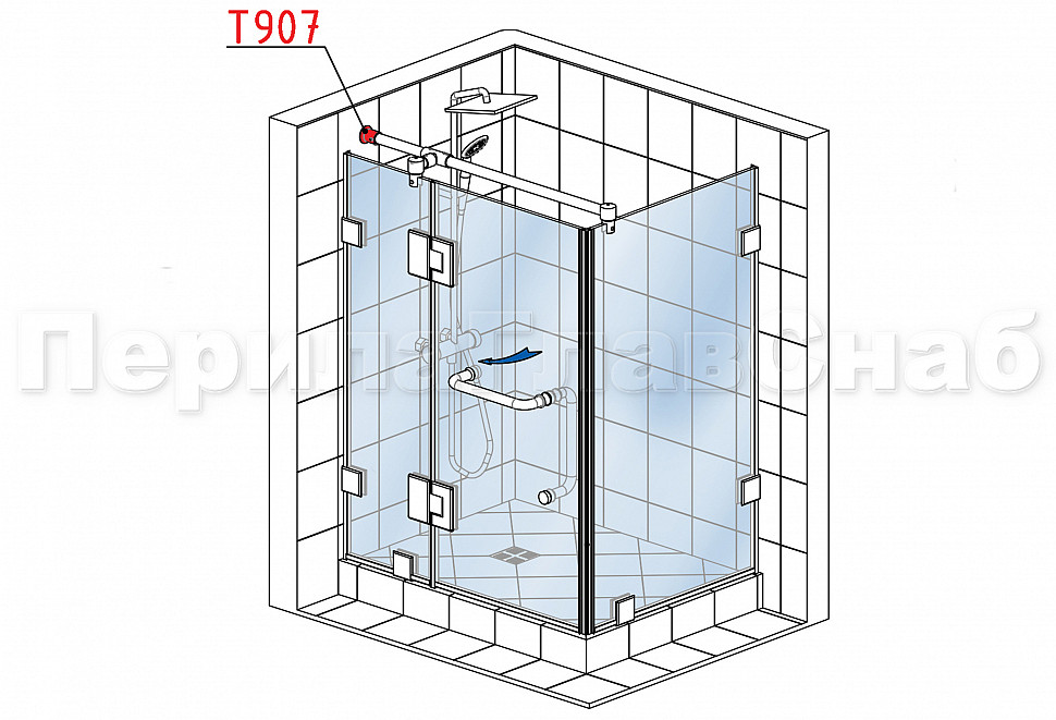 Держатель трубы t900-03 PSS и t800-06 PSS. Предназначен для соединения штанги к стене в душевых кабинах