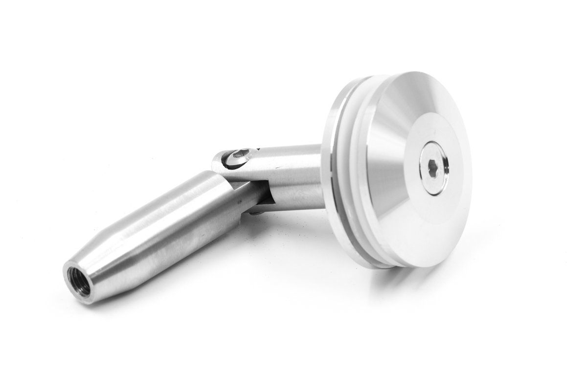 Крепление стекла к тяге для тяги М10 и стекла 10 - 20 мм. Марка стали - AISI-304, поверхность - шлифованное.