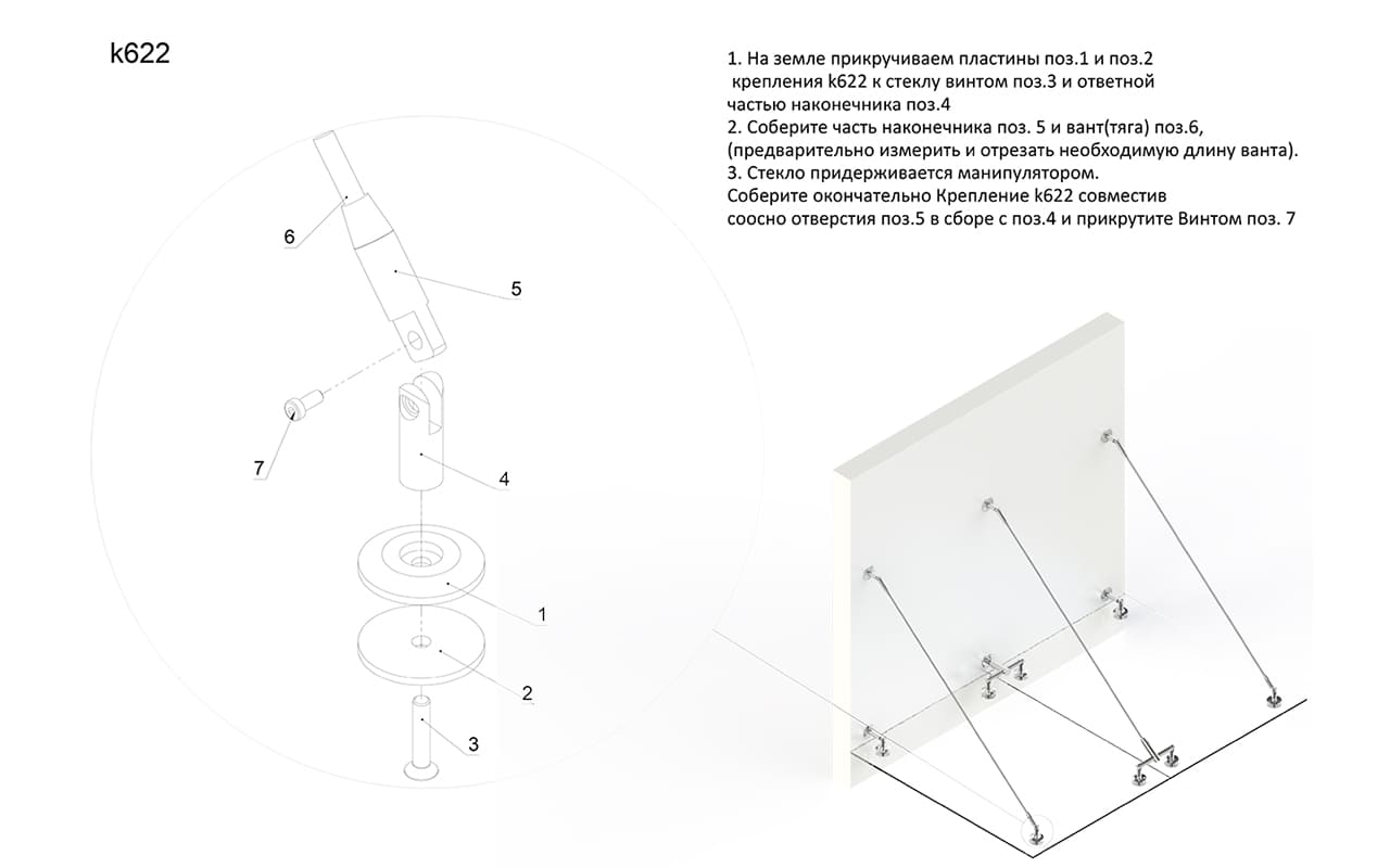 Крепление стекла к тяге, шлифованное AISI 304 k622