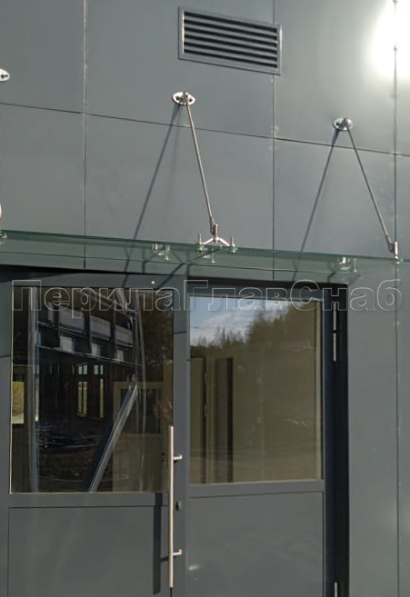 • Исключает возможность излома стекла. Конструкция фланца надёжно защищает конструкцию козырька от колебательных нагрузок.