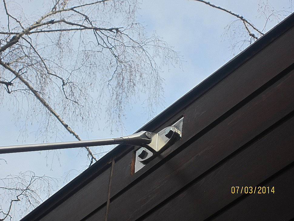 Применяется при монтаже козырьков из стекла, козырьков из поликарбоната, навесов над входом в магазин, козырьков над входом в подвал или над местом курения. Один из самых ответственных элементов крепления козырька. Отвечает за крепление конструкции непосредственно к зданию и несёт на себе весь её вес. Используется с рутелем k274либо другими рутелями с резьбой М14. Выдерживает до 500 кг. В качестве аналога можно рассмотреть комплект k667.