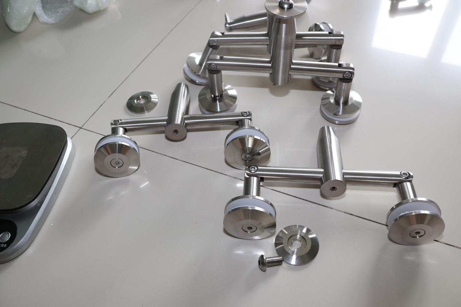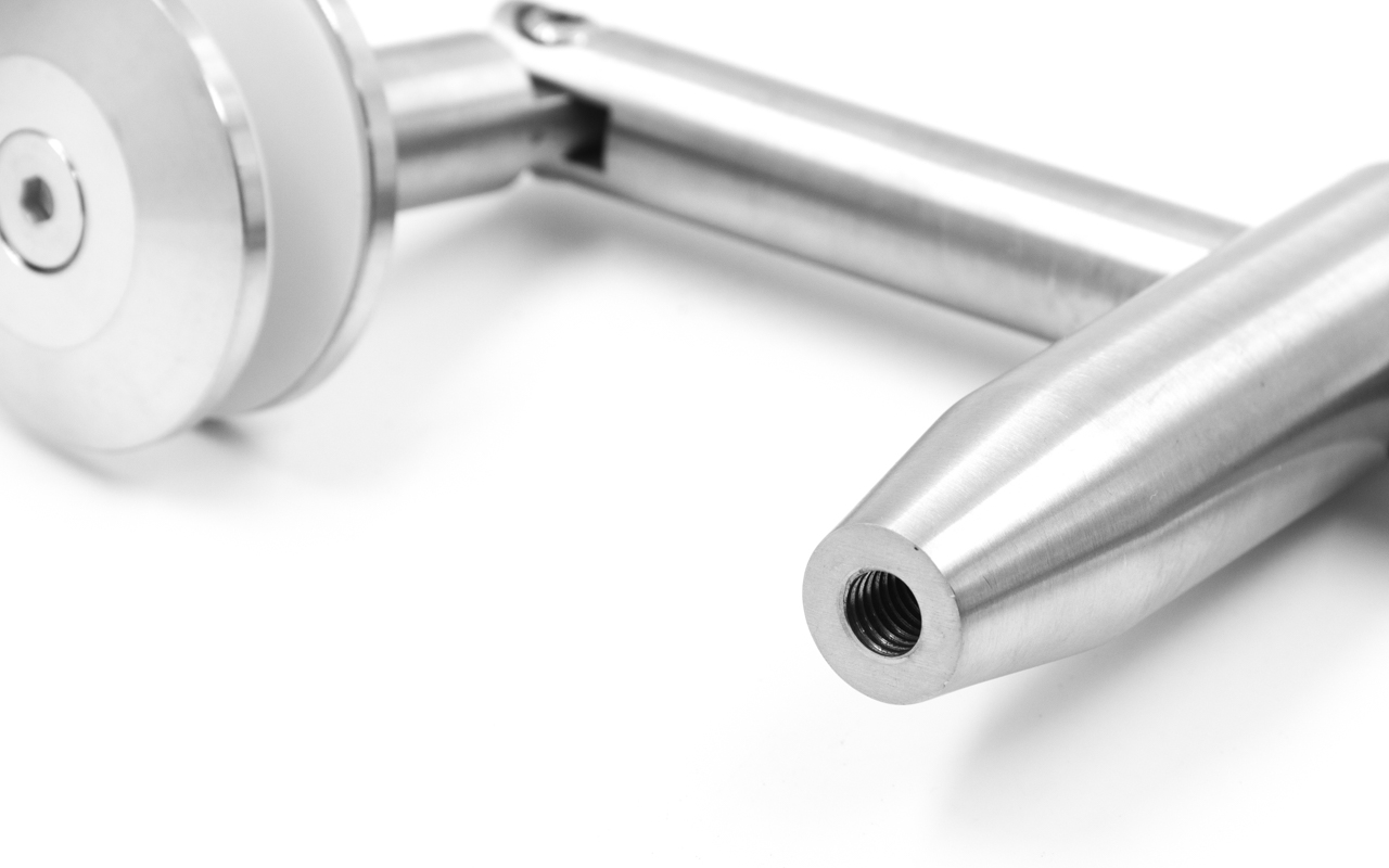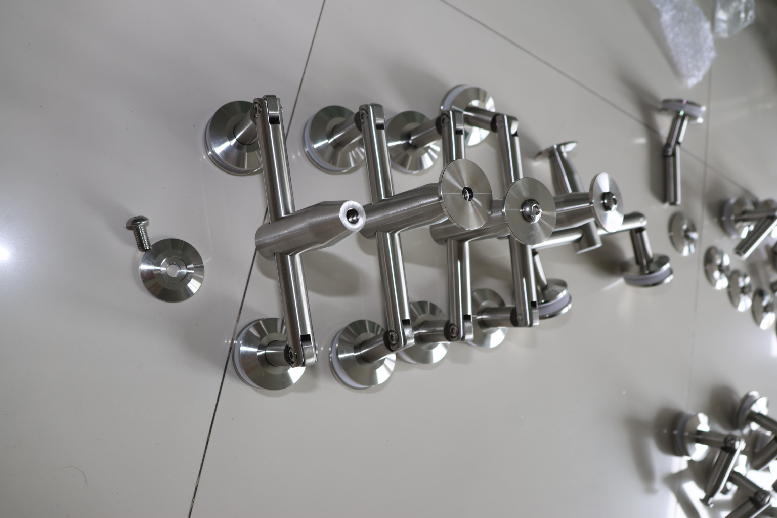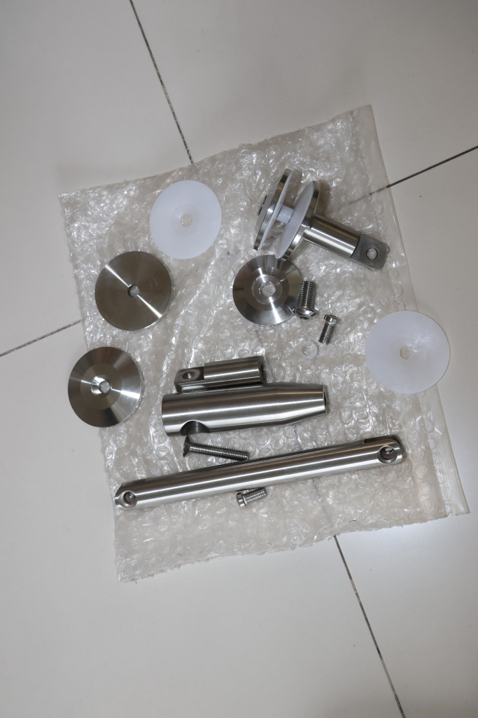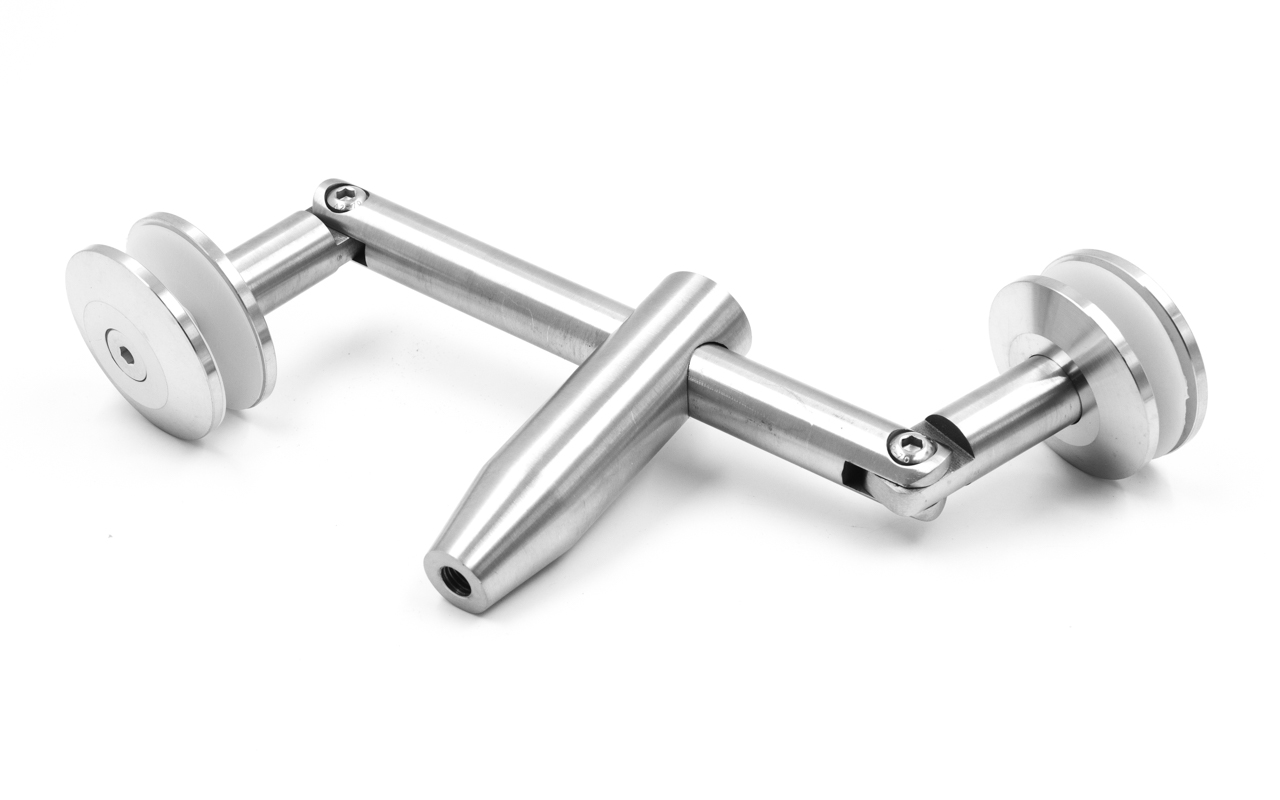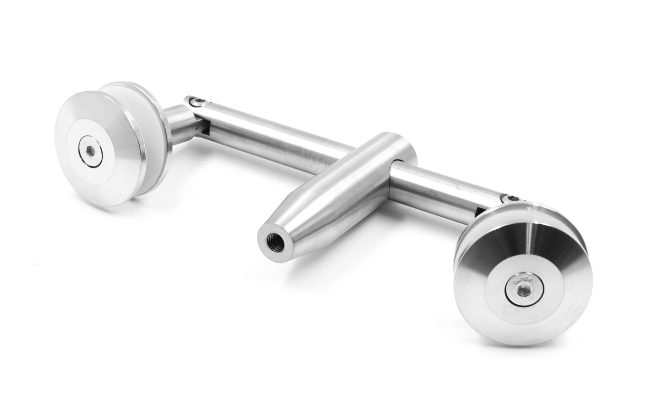 Крепление для двух стекол к ванте, поверхность полированная, марка стали- AISI 304