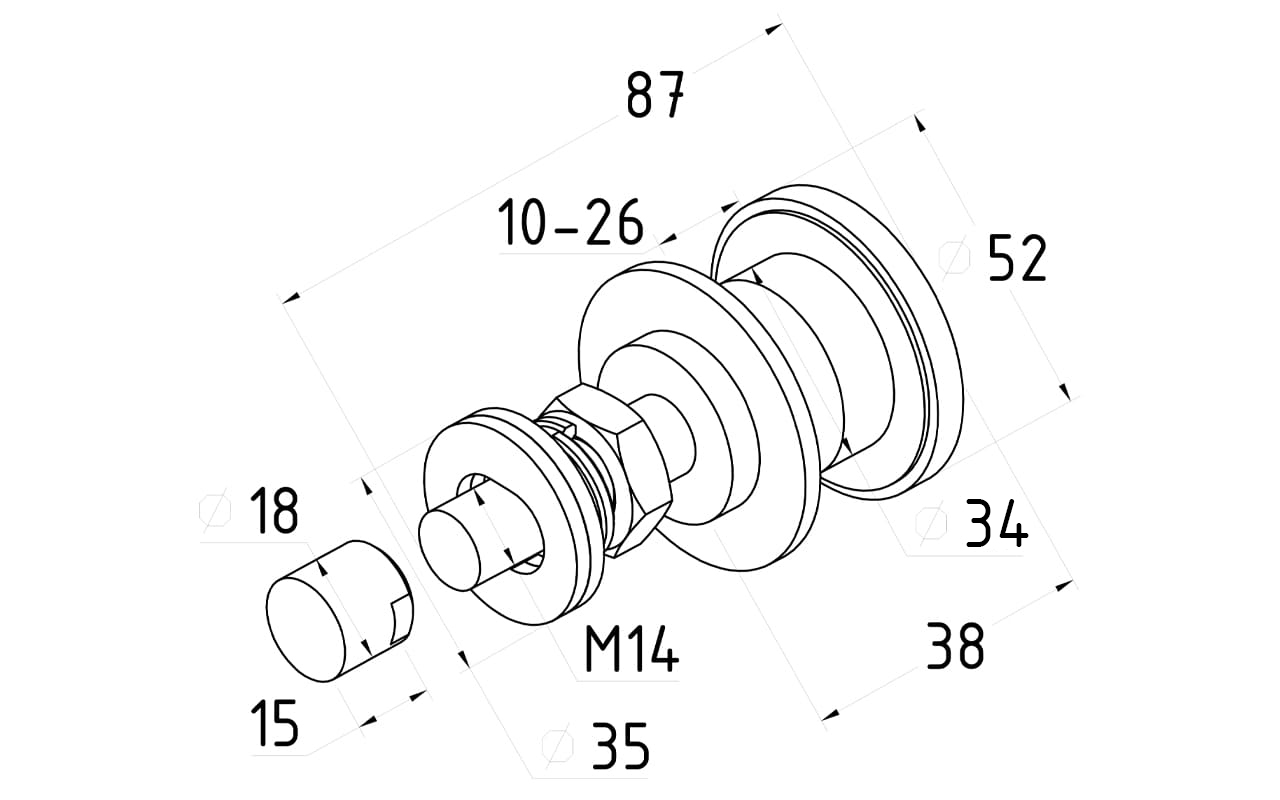 под стекло от 10 до 26 мм (отверстие 40 мм) шаг резьбы шпильки М14 рутеля - 1,5мм