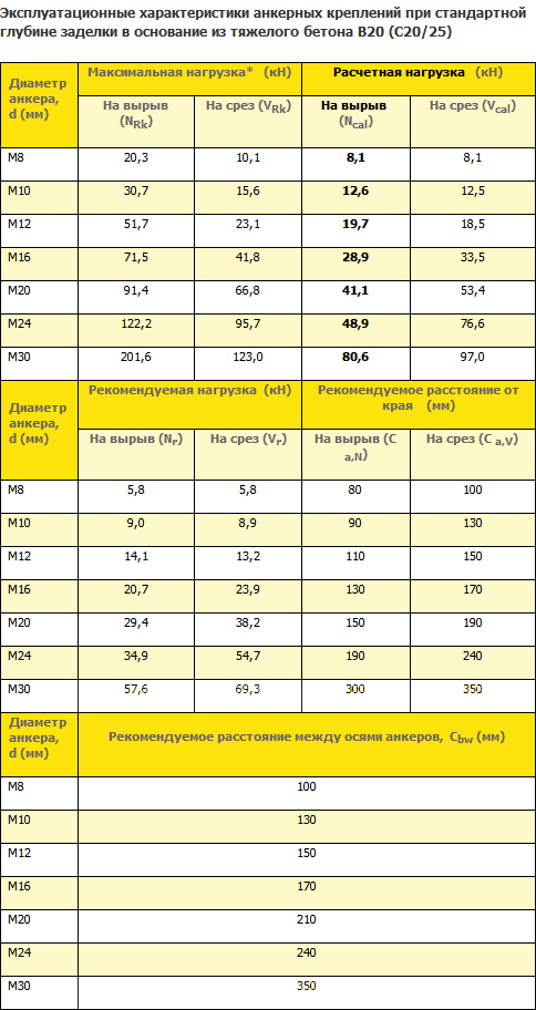 • в качестве анкера допускается использование любых металлических резьбовых шпилек и фундаментных болтов