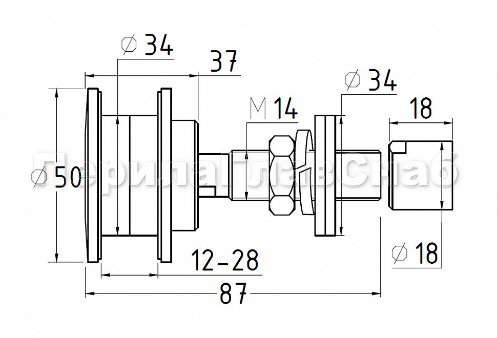 Рутель для вантового крепления козырьков, регулируемый, разборный, под стекло от 10 до 28 мм, полированный, диаметр внешнего кольца 52, шпилька М14 (AISI 304) k269-5