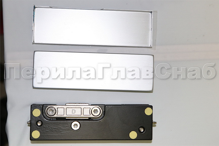 Сбоку нажимаем на крепления крышек и снимаем. Отвинчиваем винты, и фиксируем фитинг в подготовленный вырез в стекле. Далее закручиваем и фиксируем обратно крышки.