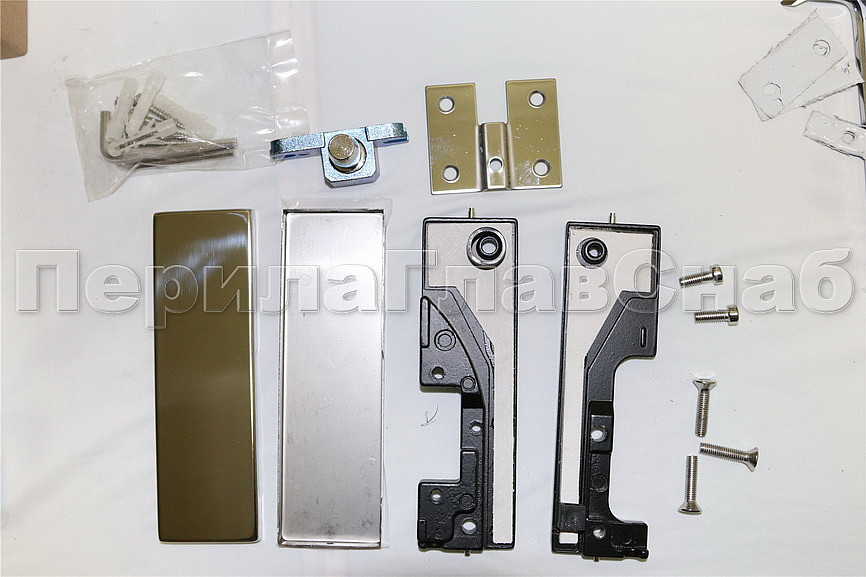 фитинг на фрамугу с осью и монтажной пластиной закрепляет фрамугу на проем. Устанавливается, когда с петельной стороны нет бокового неподвижного стекла. В детали предусмотрены четыре отверстия для монтажа к стене или металлическому каркасу.