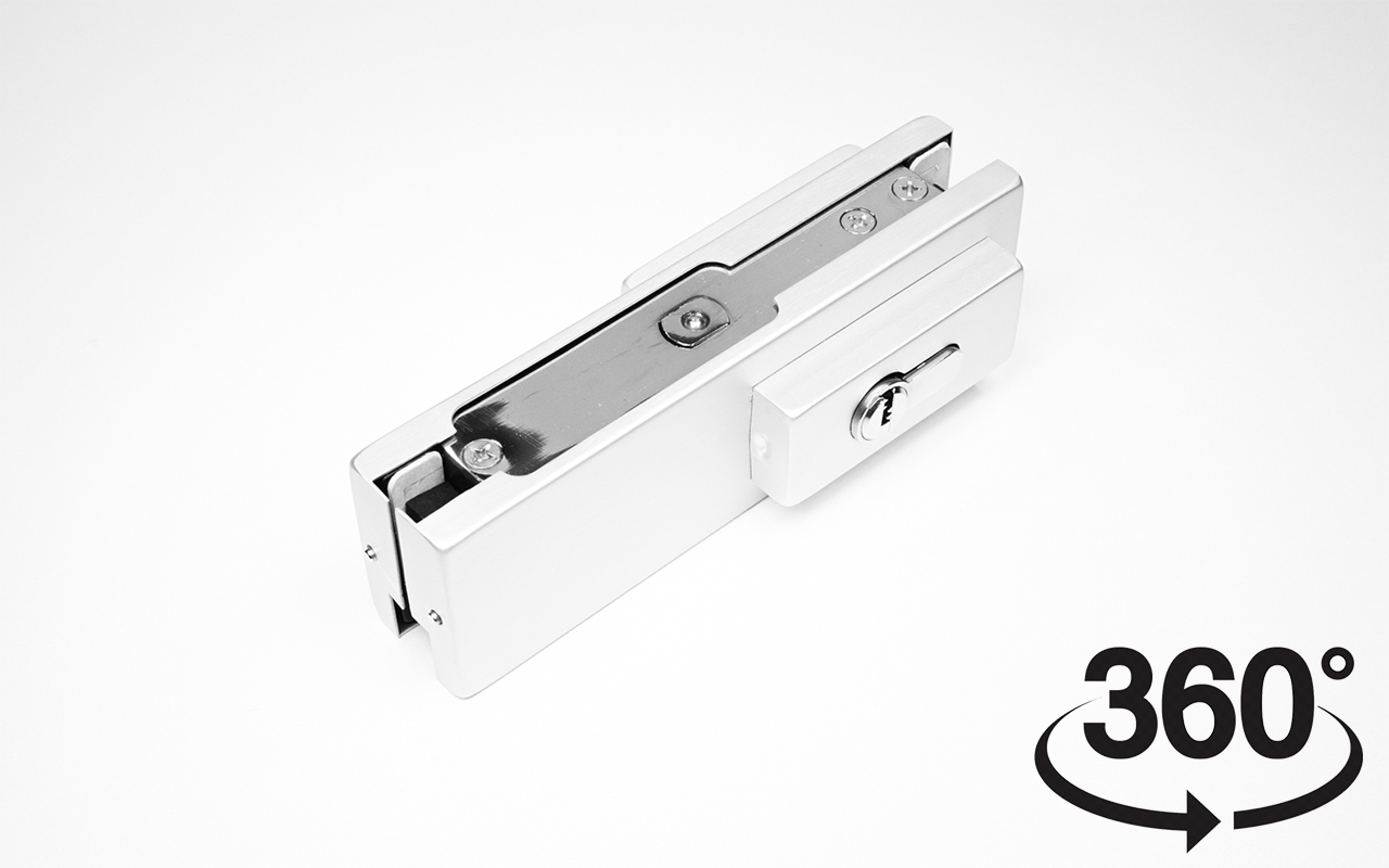 Замок для стеклянной двери угловой с круглым ригелем комплект, под алюминий