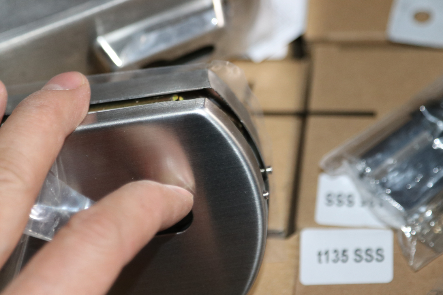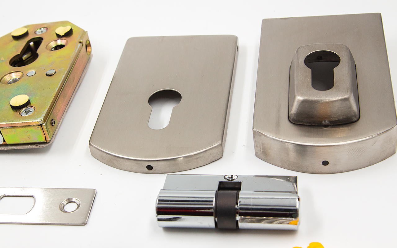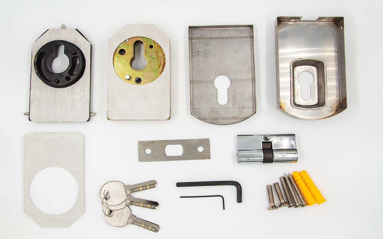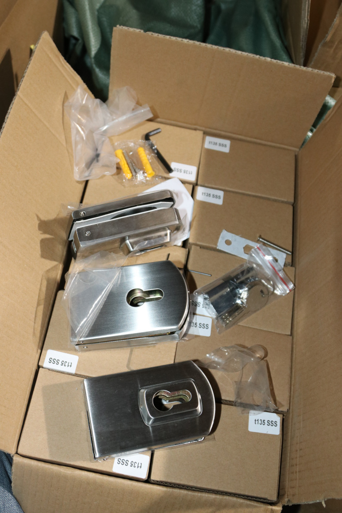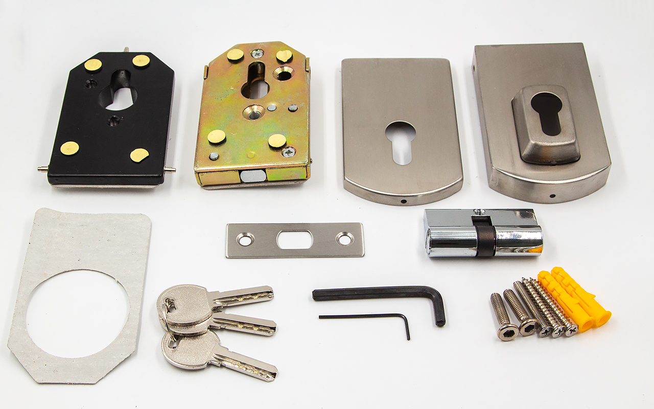 снимаем крышки замка, с помощью шестигранника раскручиваем замок на две части, фиксируем замок в заранее заготовленный вырез стекла. И обратно собираем- закручиваем замок и закрываем крышки