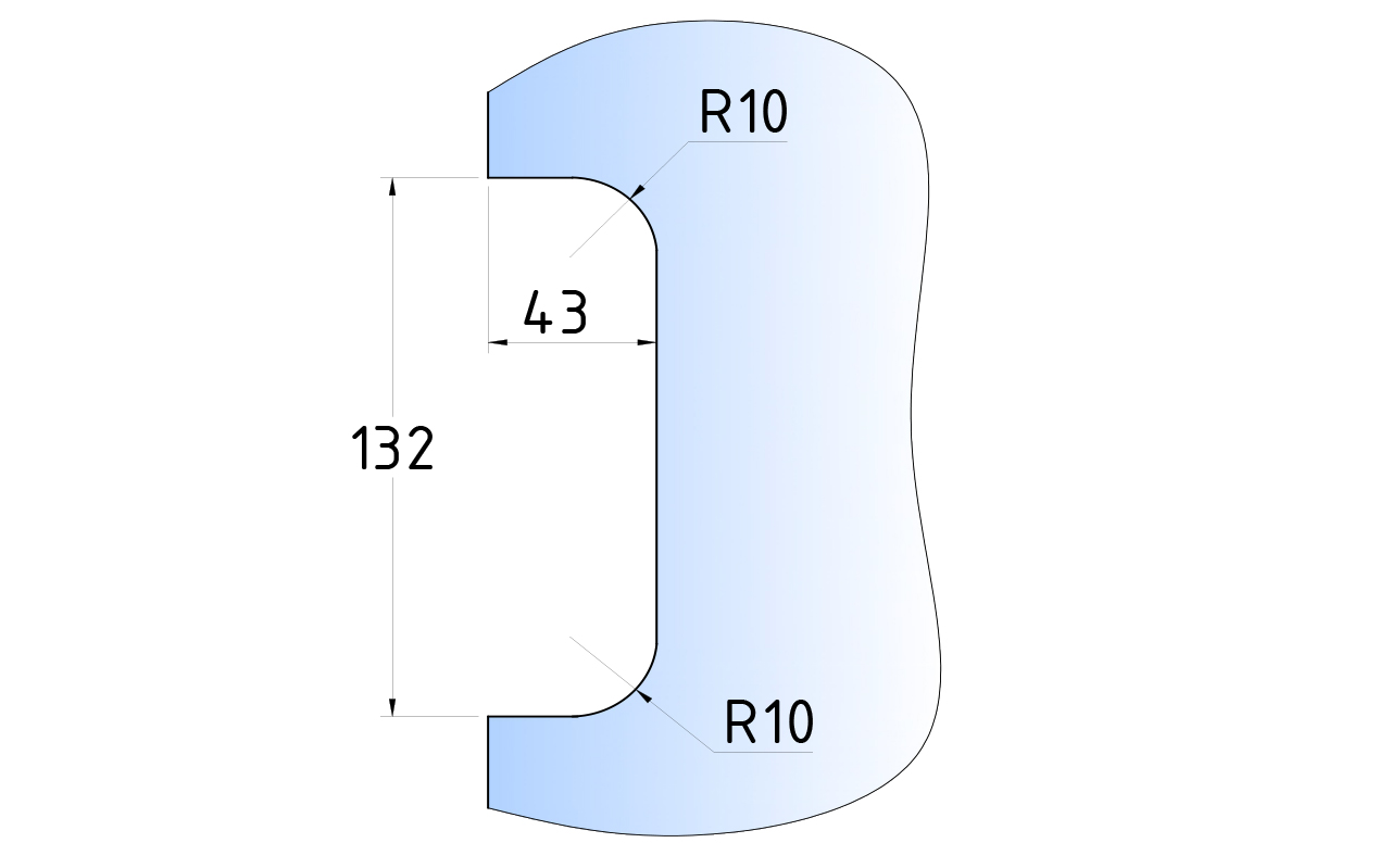 Замок для стеклянной двери центральный с прямоугольным ригелем, шлифованный, вырез 13