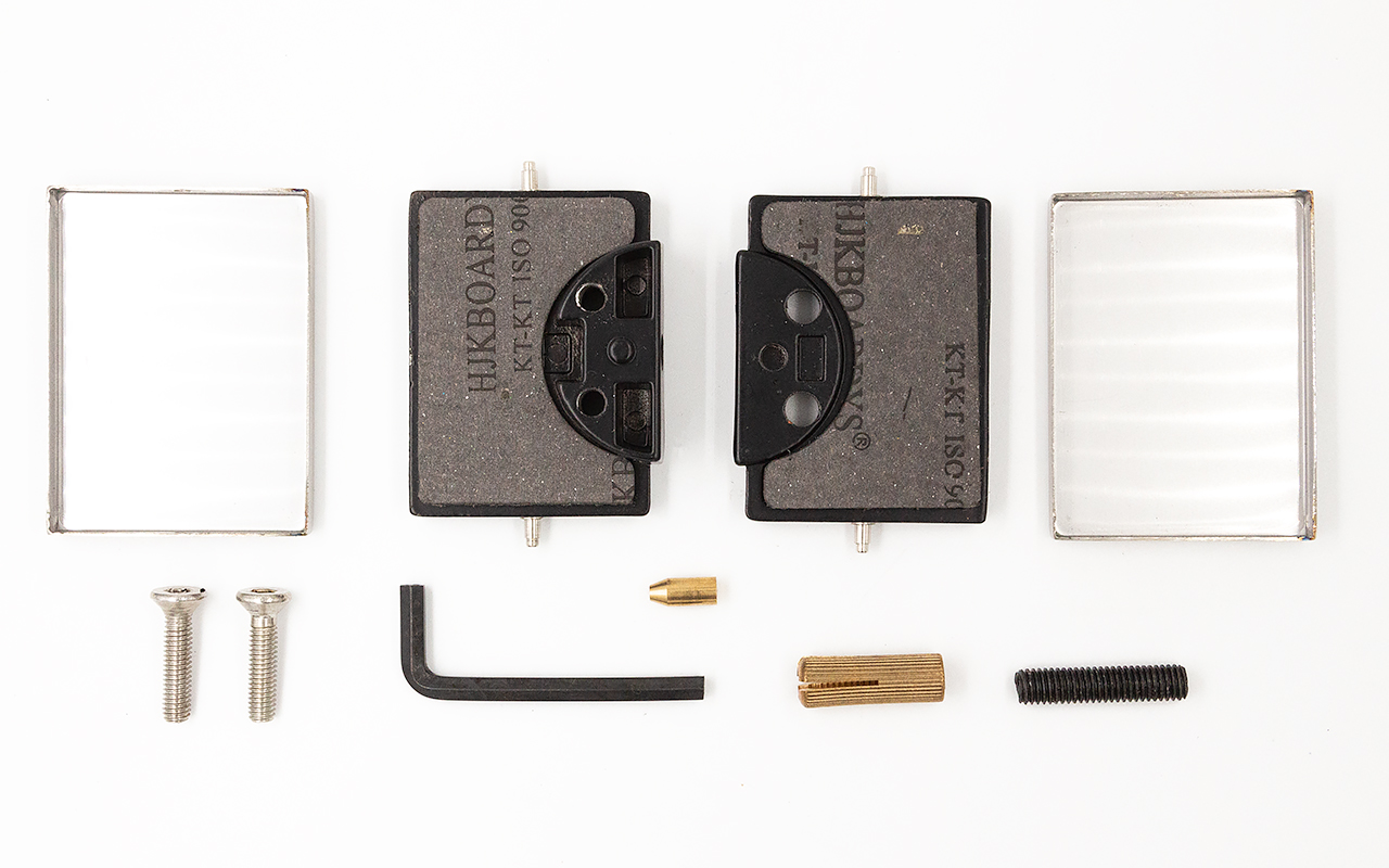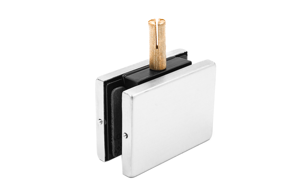 В комплект идёт дюбель для крепления в стену, фиксируем его в стену и накручиваем на коннектор 191. Коннектор разбирается на две половинки, затем к нему прикладывается стекло со специальными полукруглыми вырезами, а далее второй половинкой стекло зажимается.