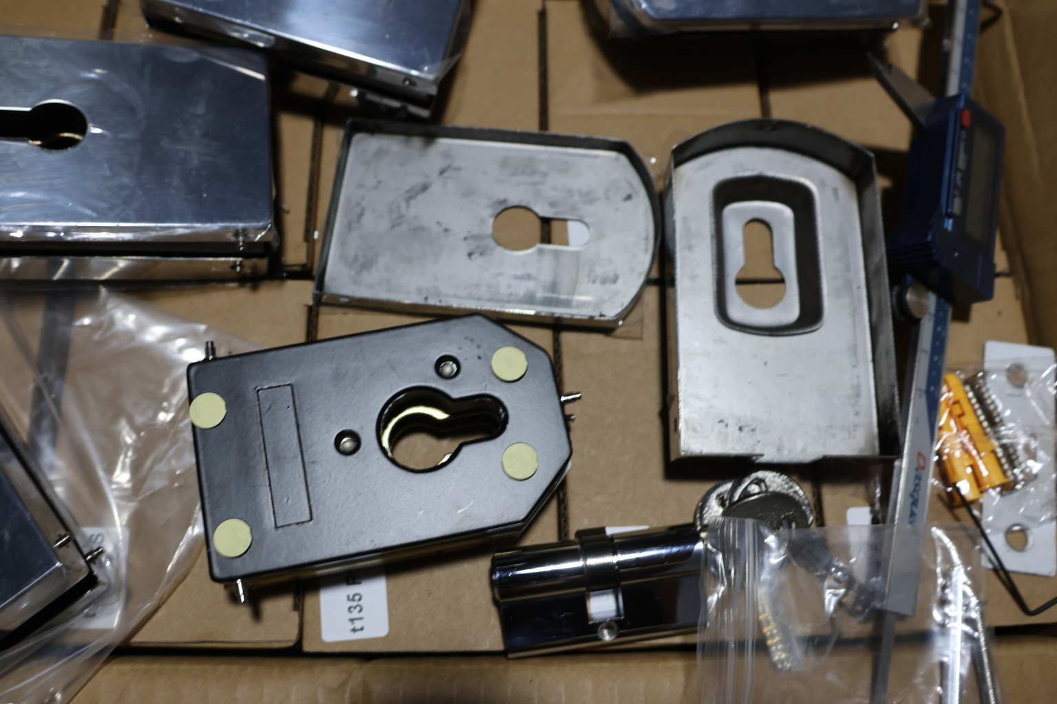 Замок вертикального типа включает в себя ответную часть для пола или стены.
