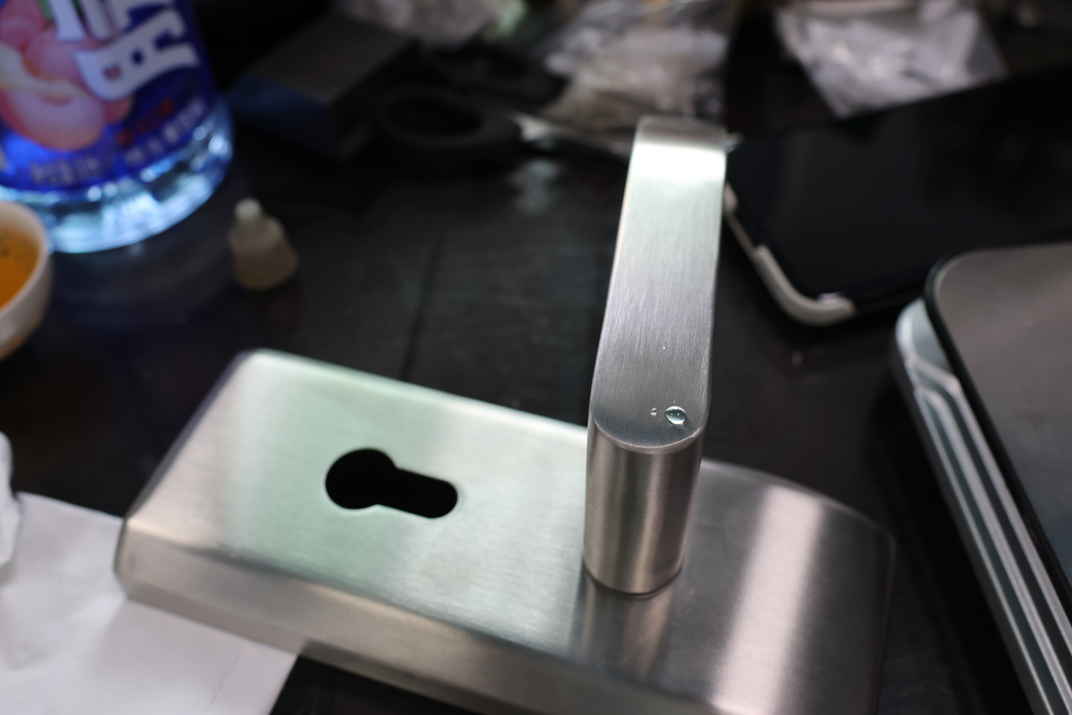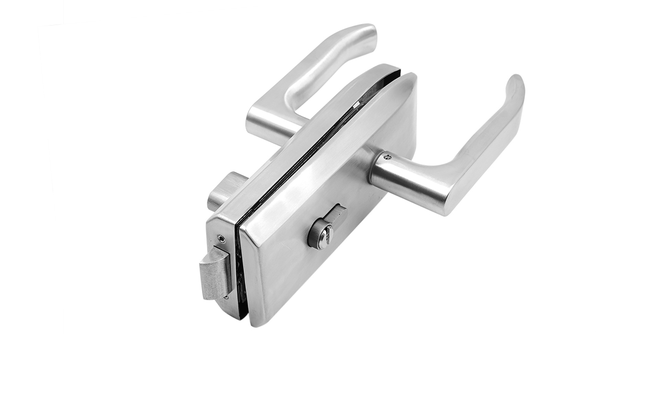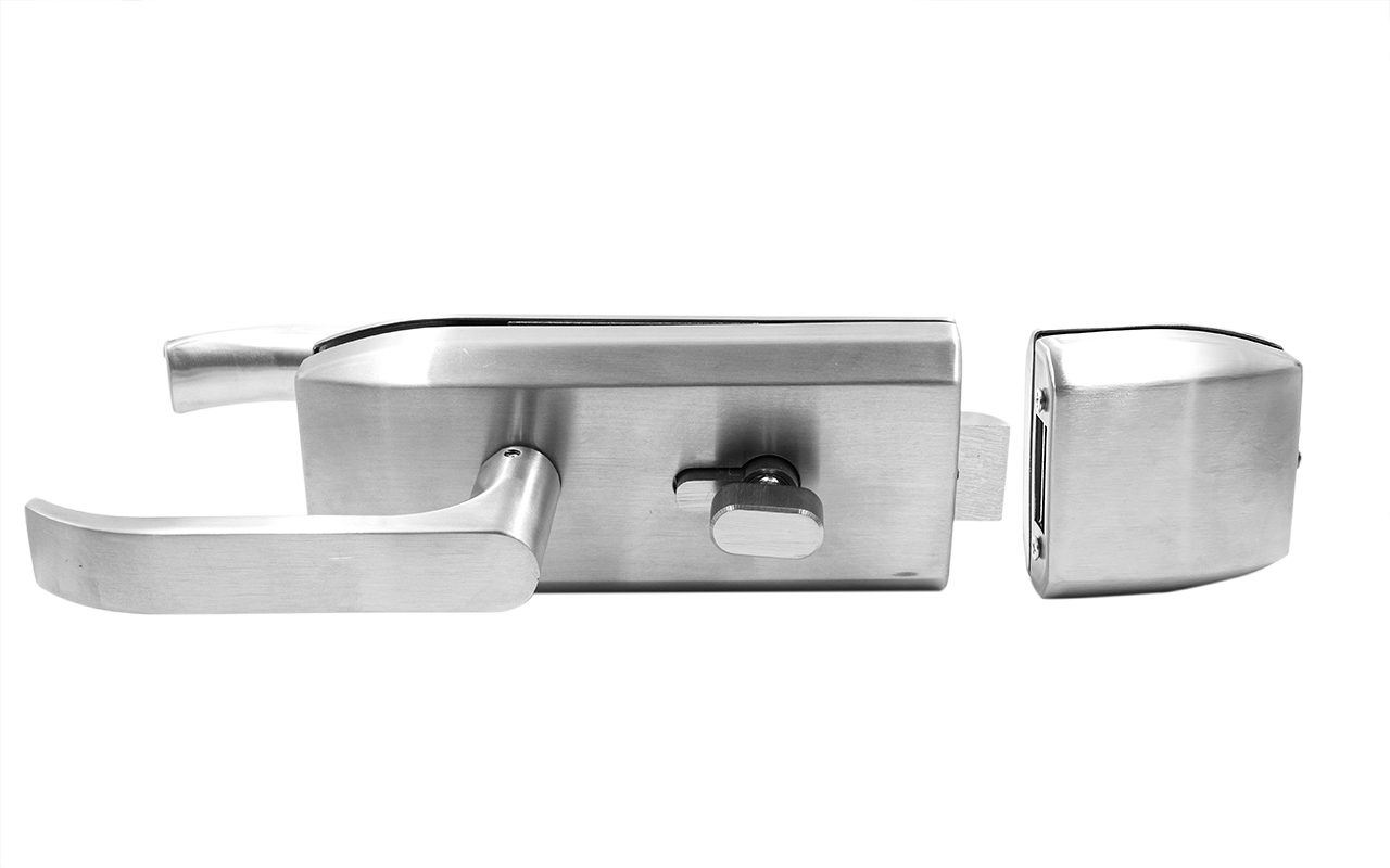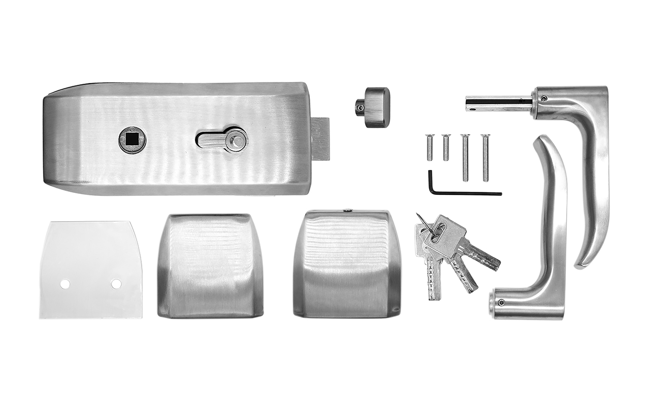 Замок для стеклянной двери с нажимной ручкой без притвора, евроцилиндр односторонний ключ/защелка, в комплекте ответная часть на стекло t155 SSS