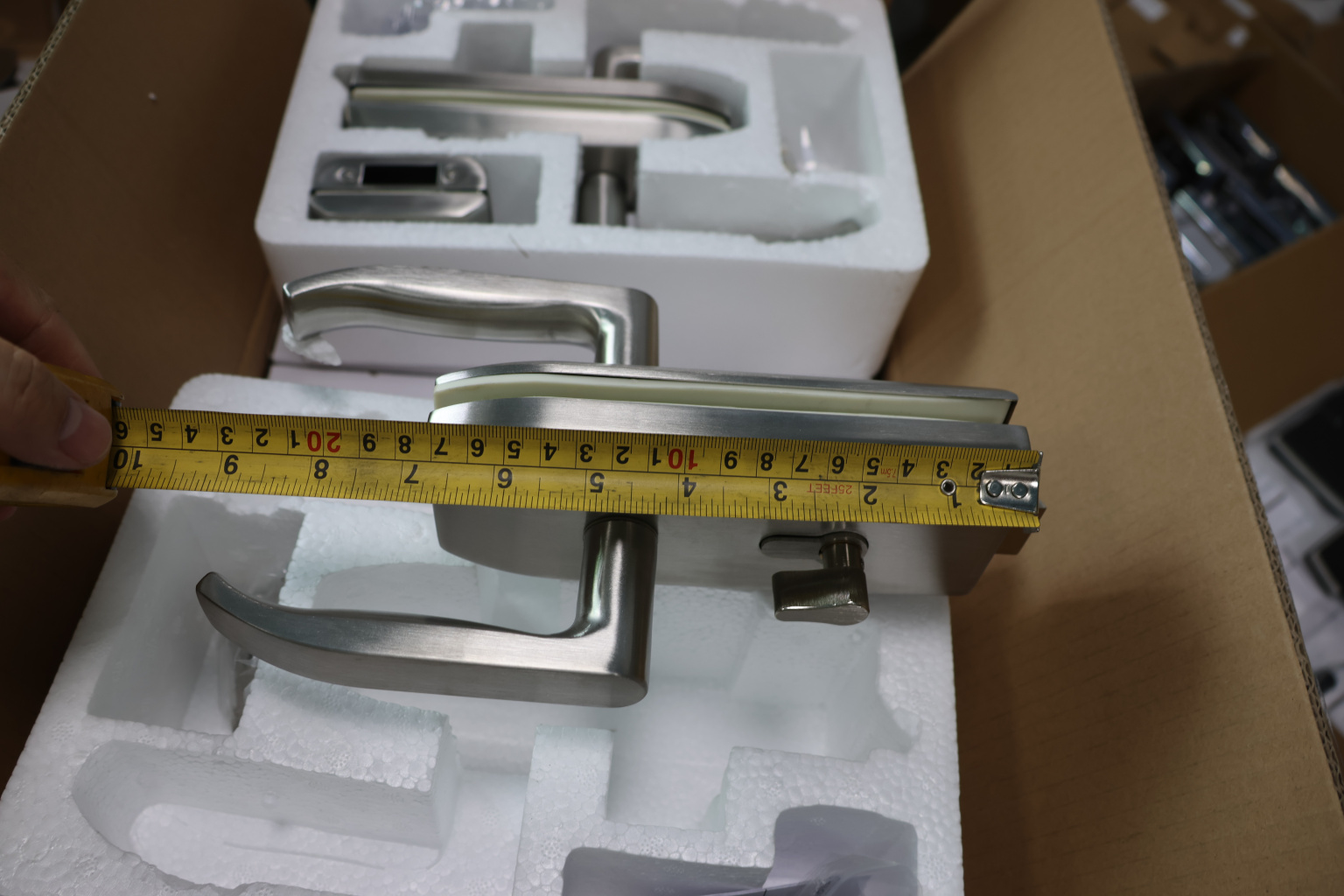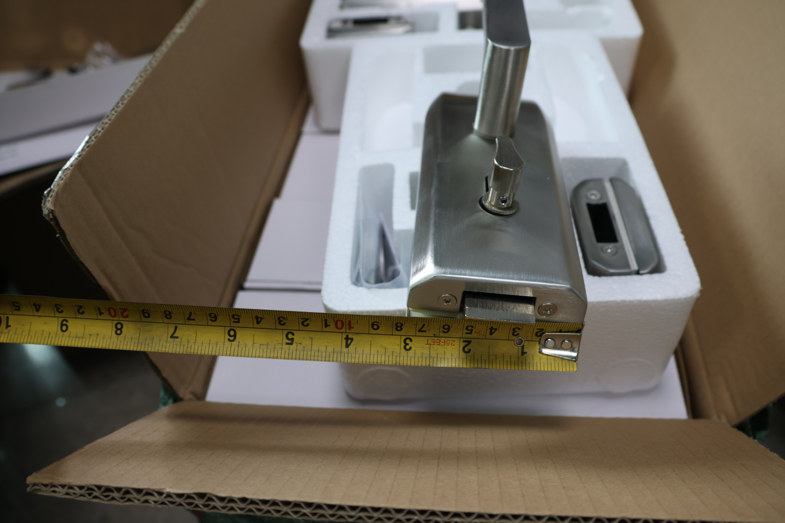 монтируется на стеклянную дверь, толщина стекла 8-12 мм.