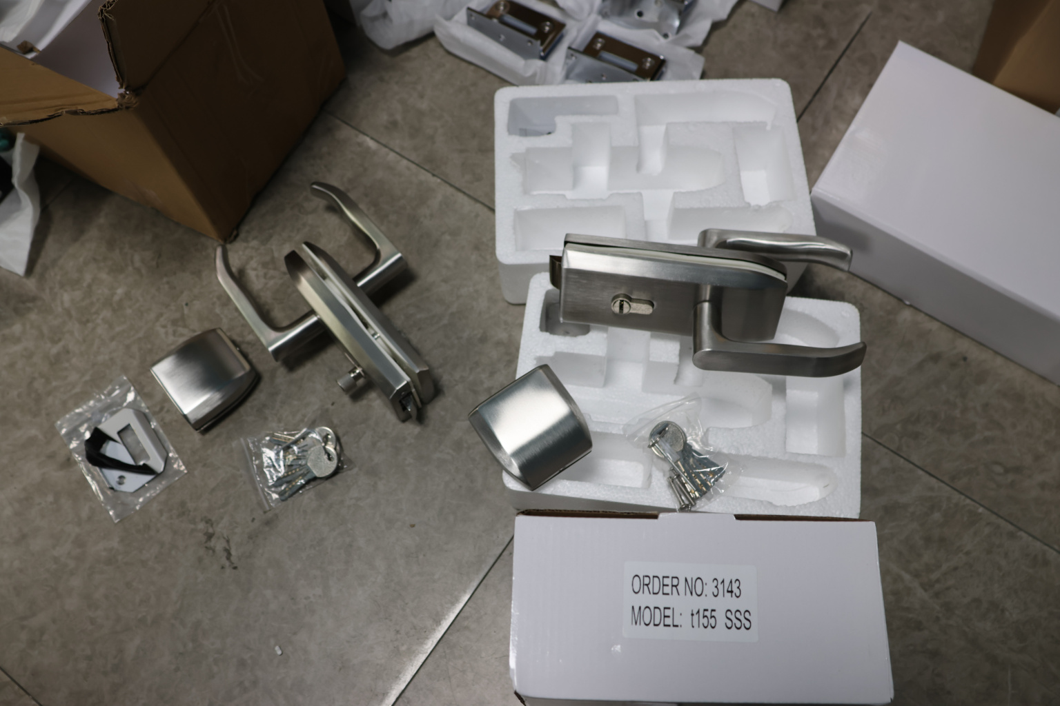 t155 SSS Замок с нажимной ручкой без притвора, евроцилиндр односторонний ключ/защелка, в комплекте ответная часть на стекло.