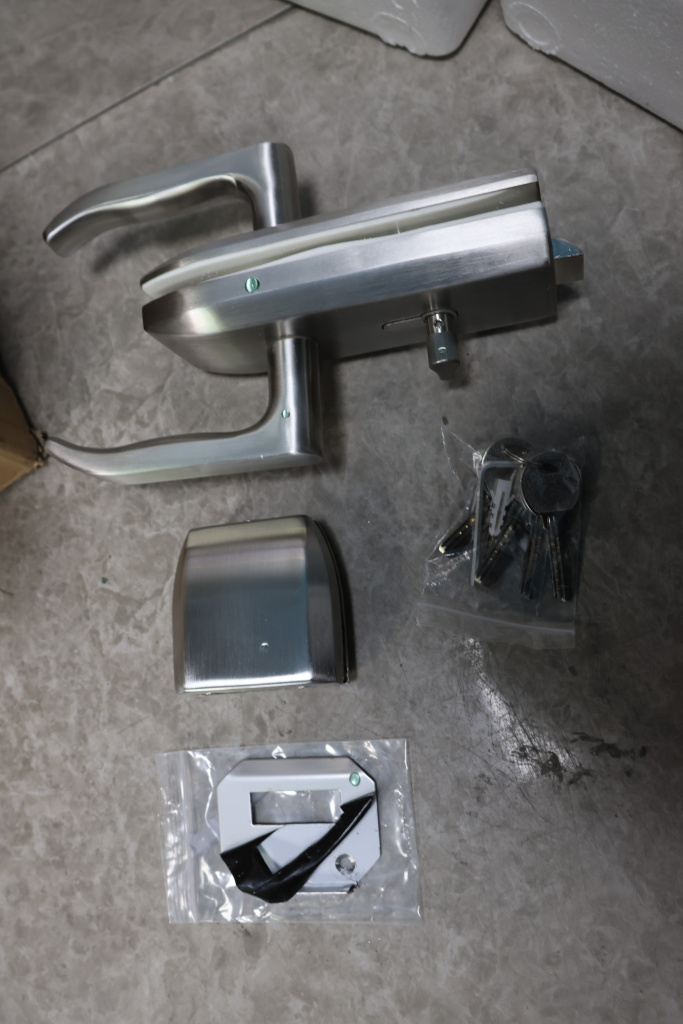 С помощью шестигранников откручиваем ручки замка, вертушку на личинке и с торца замка два винта откручиваем и снимаем крышки. И фиксируем замок в подготовленный вырез в стекле. Далее закручиваем и фиксируем обратно замок и после- крышки и ручки ставим на место.