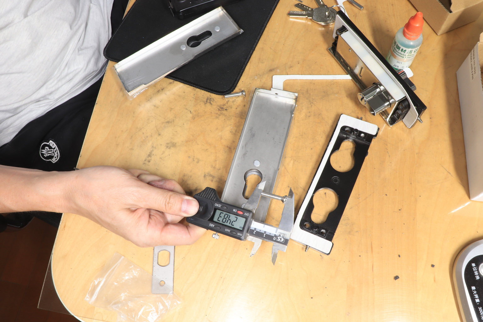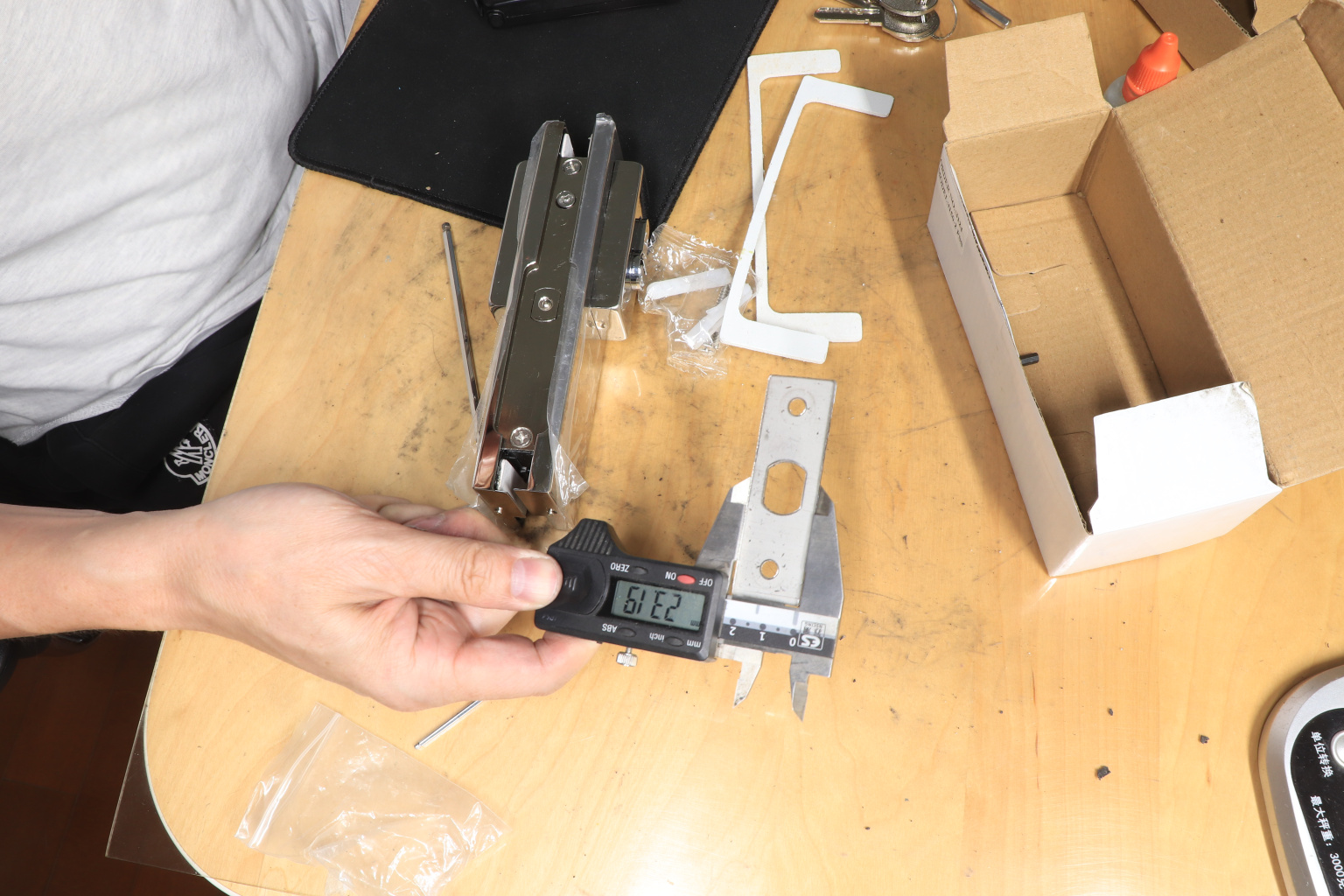 Сбоку нажимаем на крепления крышек и снимаем. Отвинчиваем винты, и фиксируем замок в подготовленный вырез в стекле. Далее закручиваем и фиксируем обратно крышки. Ответную часть крепим под замком с пробуренным отверстием под ригель.