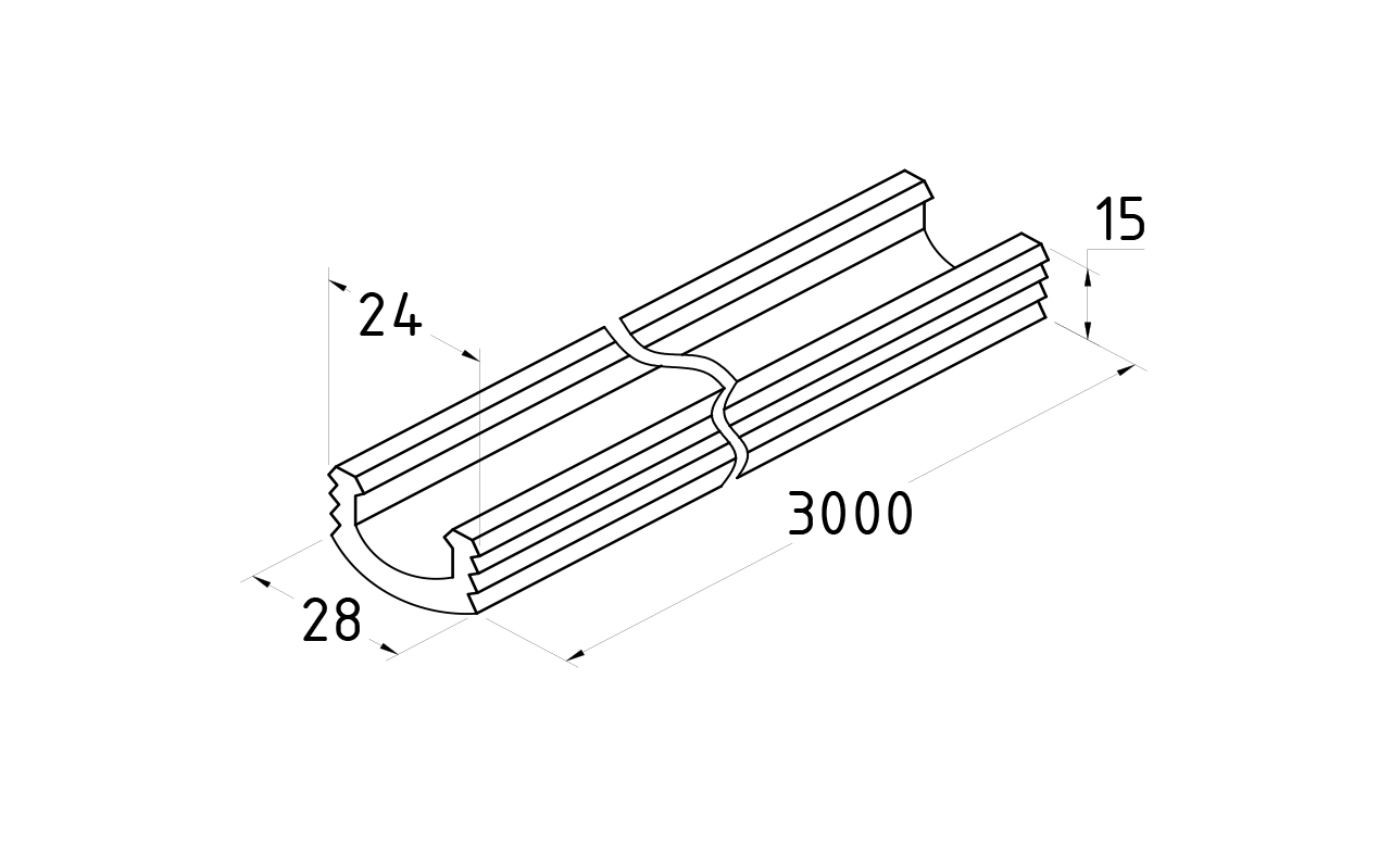 Рассеиватель света для поручня с пазом 24х24 выпуклый (хлыст 3 метра)