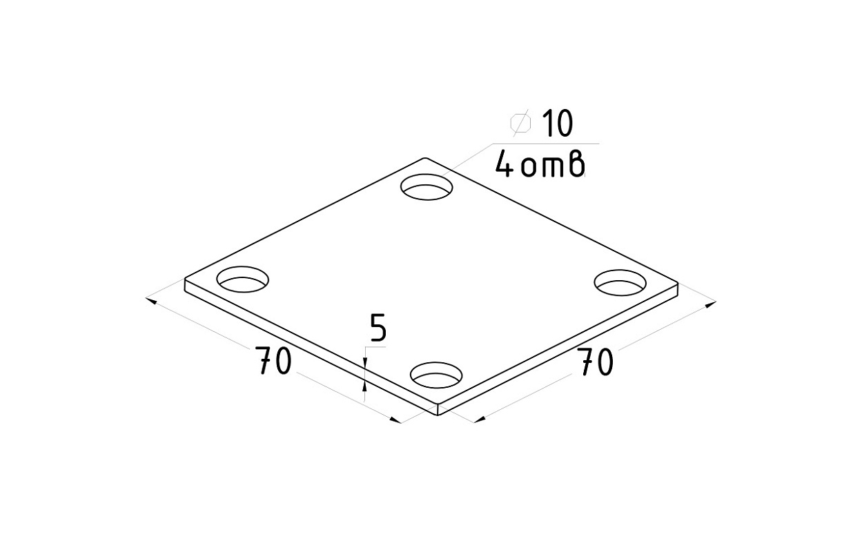 Фланец стойки 71х71х5 (4.3). Марка стали - AISI - 304, 4 отв. М10