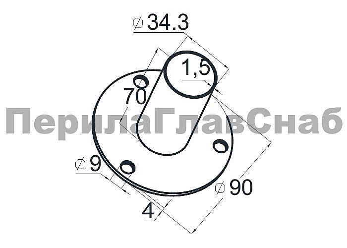 Треханкерная закладная для трубы диметром 38.1х1.5 мм, на деревянную ступень, фланец 3 мм. Деталь полированная, самосборная, с тремя отверстиями. Марка стали - AISI 316