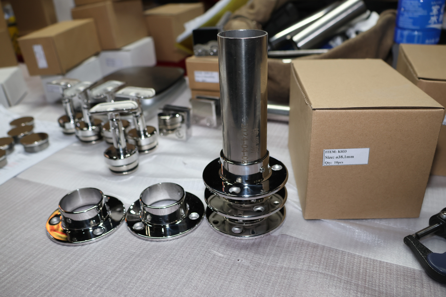 Фланец для трубы Ø50.8 мм, литой, полированный под 3 самореза 4.8 мм (AISI 304) k022