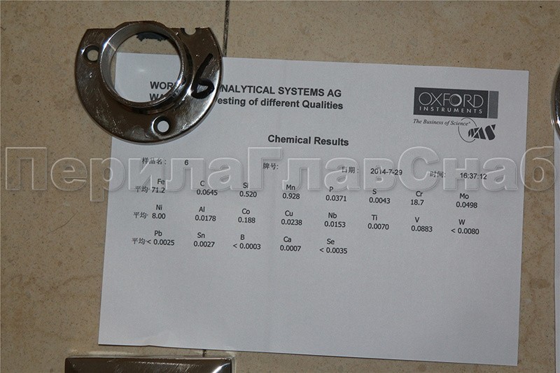 Фланец с тремя отверстиями для трубы диаметром 38.1 мм. Деталь литая, полированная. Марка стали - AISI 304