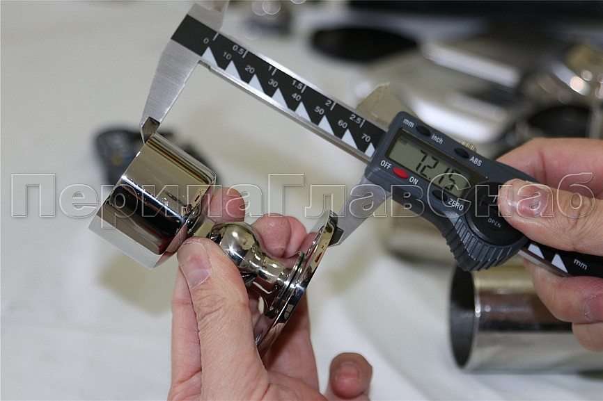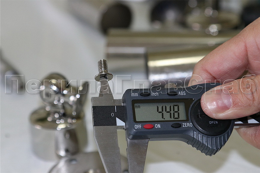 Фланец наружный по отношению к трубе поручня. Перила заправляются внутрь стального фланца, установленного на 3 самореза в стену.