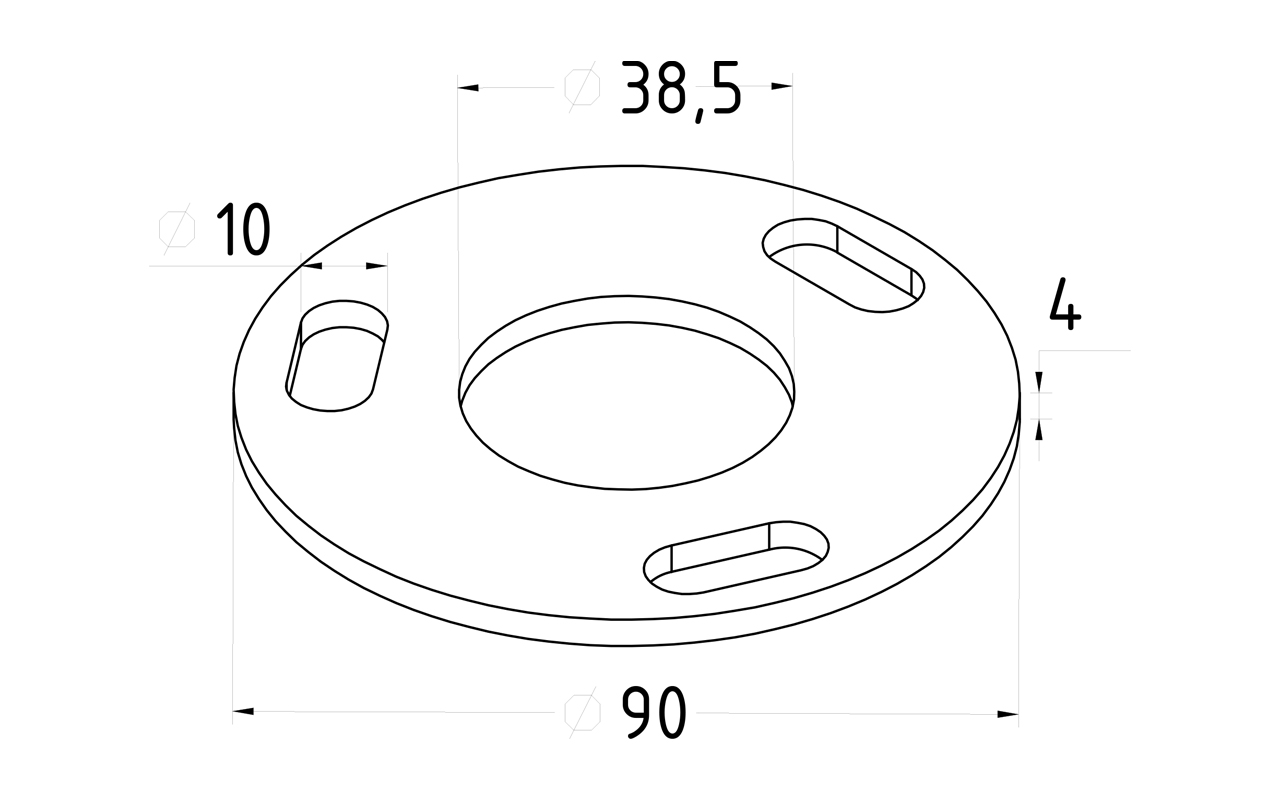 Фланец стойки 38/90 х 5 (4,3) х AISI 304 #200 3 отв х М10 х 20 k116-38-7