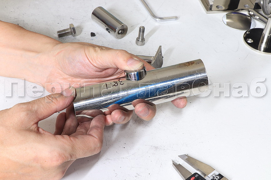 Держатель поручня к стойке диаметром - 38.1 мм, с ложементом для трубы диаметром 50.8 мм. Деталь полированная, литая. Марка стали - AISI 304