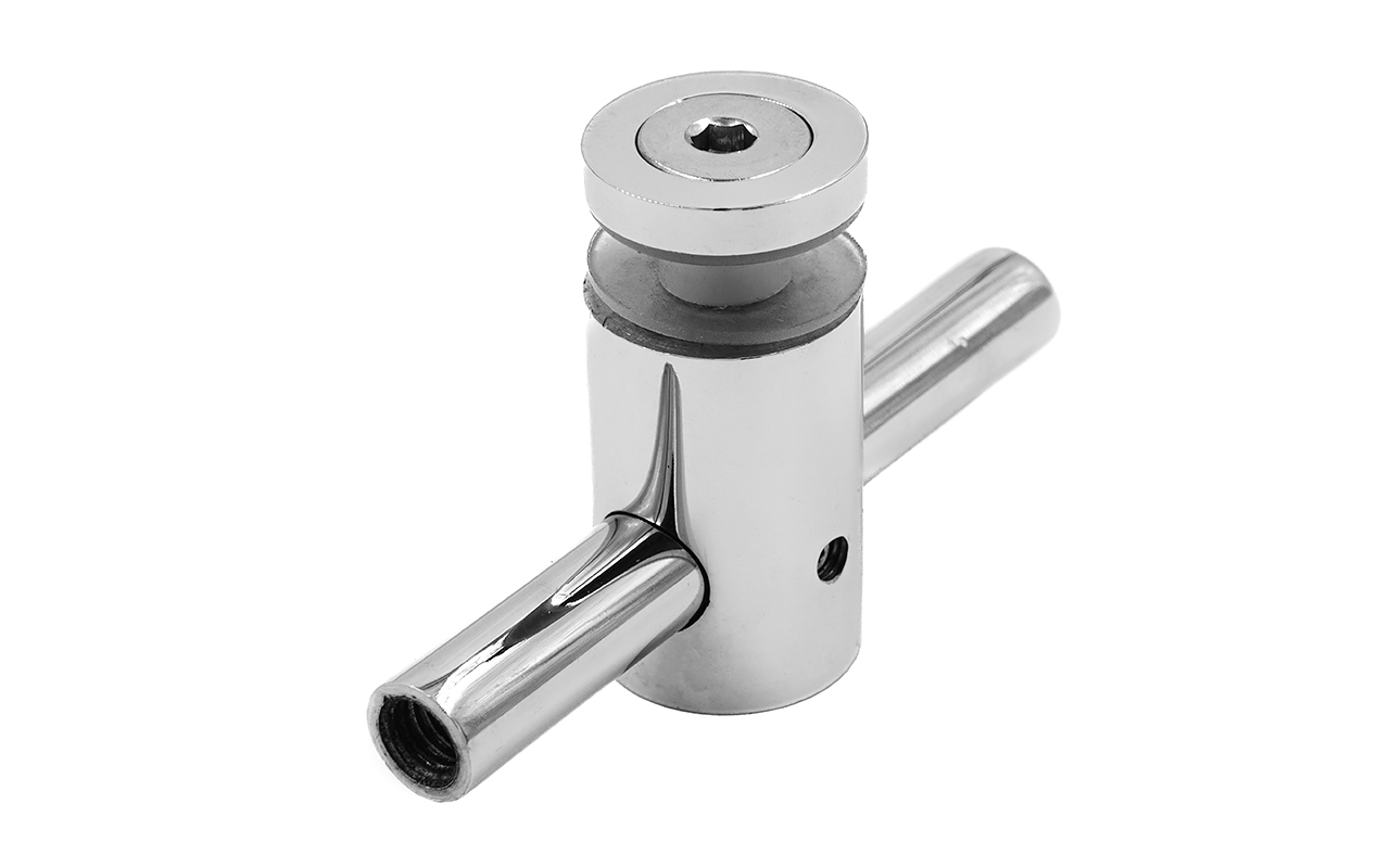 Спайдерный стеклодержатель для стекла 10 мм (5+5 мм), полированный, регулируемый. Марка стали -  AISI 201