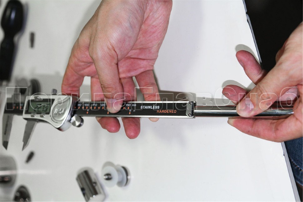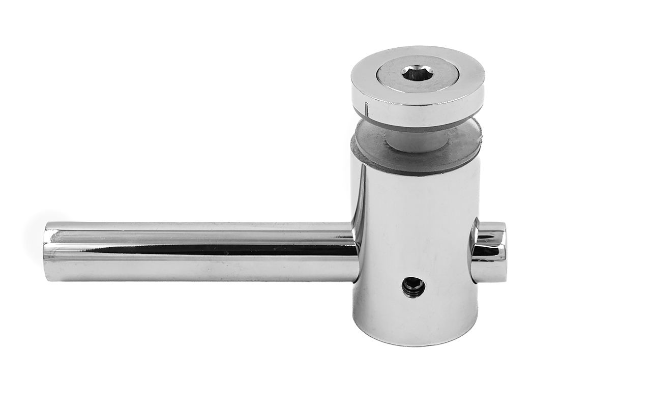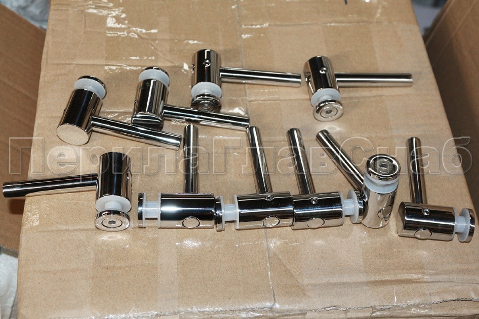 2 гайки Ø25 мм, в комплекте с втулкой  k503 и винтом М8, палец Ø18х106 мм. Благодаря наличию регулировки, отступ кромки стекла относительно оси стойки может доходить до 60 мм, а вынос составляет 30 мм